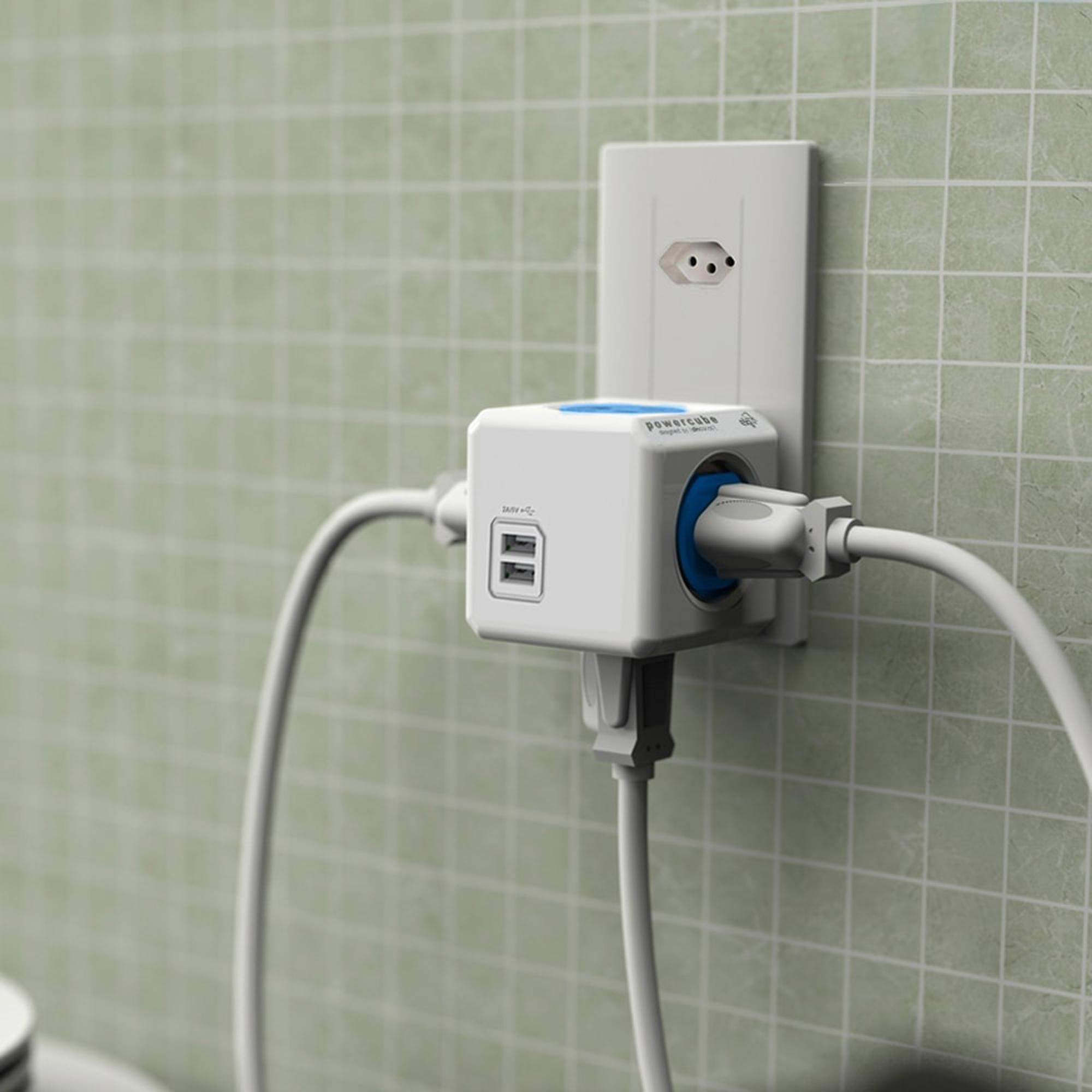 Estrutura compacta (4 tomadas de energia posicionadas de forma a não impedir a conexão da tomada ao lado).