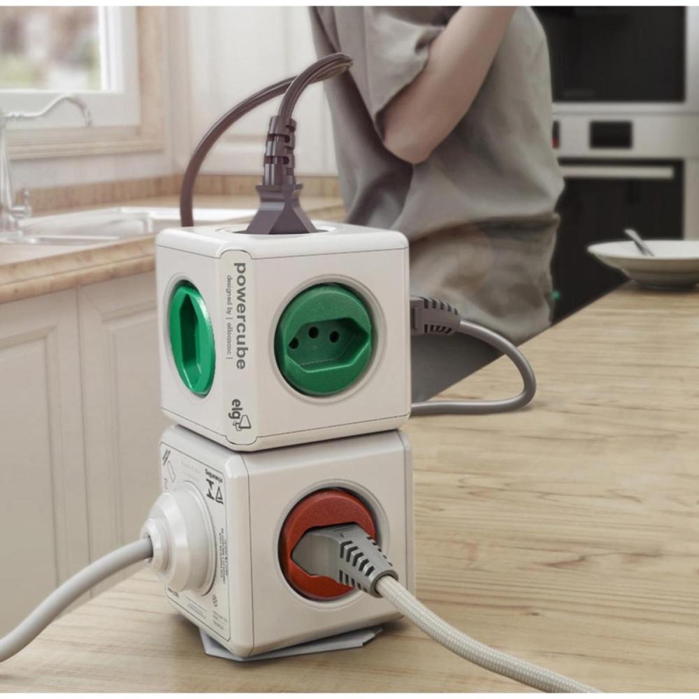 Estrutura compacta (5 tomadas de energia posicionadas de forma a não impedir a conexão da tomada ao lado)