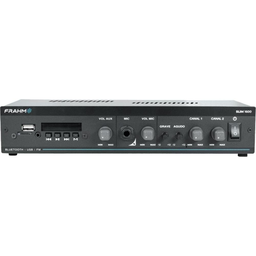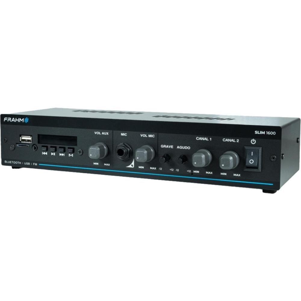 O Amplificador Frahm Slim 1600 G5 é a linha nº1 em amplificadores comerciais do Brasil, agora em sua quinta geração (G5), trazendo ainda mais tecnologia e um visual único. Este é um modelo que oferece potência de 60 Watts RMS, sendo uma escolha versátil para uma variedade de ambientes comerciais, como recepções, clínicas, conveniências, farmácias e lojas.