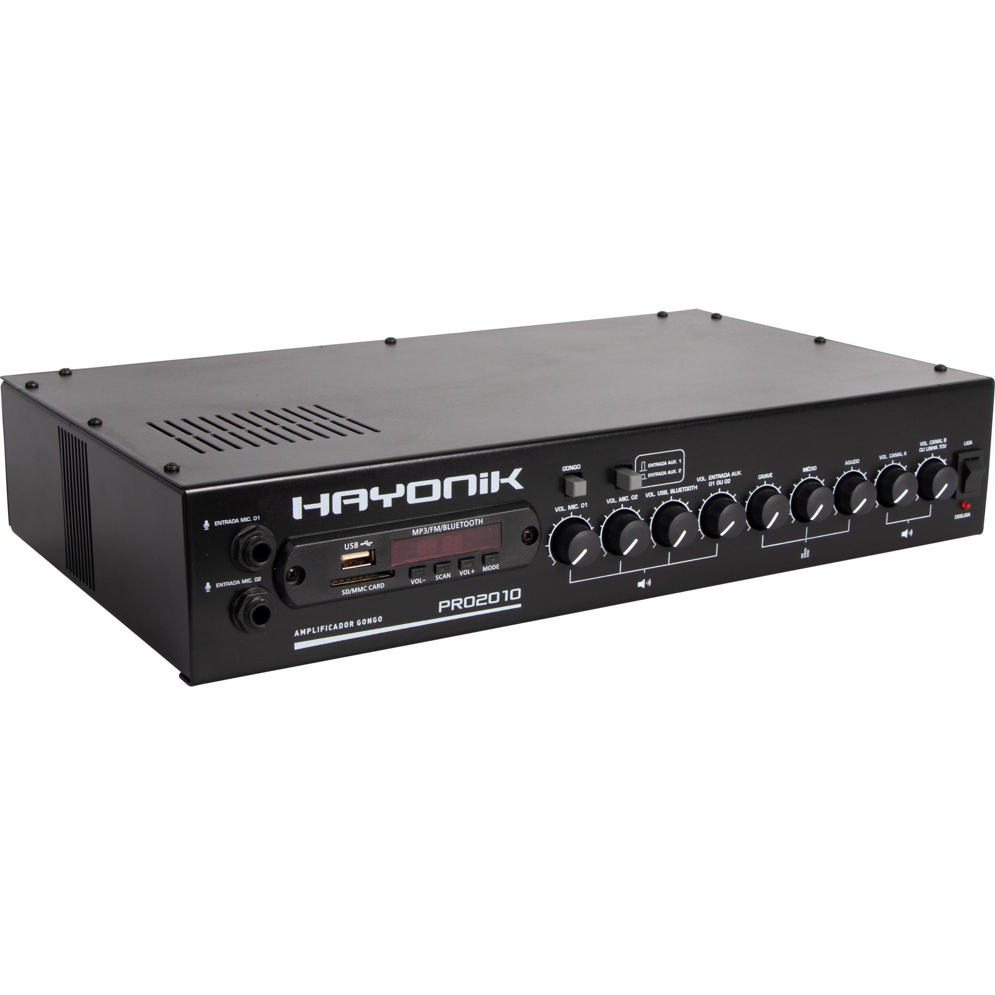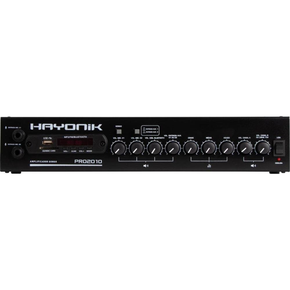 Equalização: Grave, Agudo, Volume Mic, Volume Aux/USB