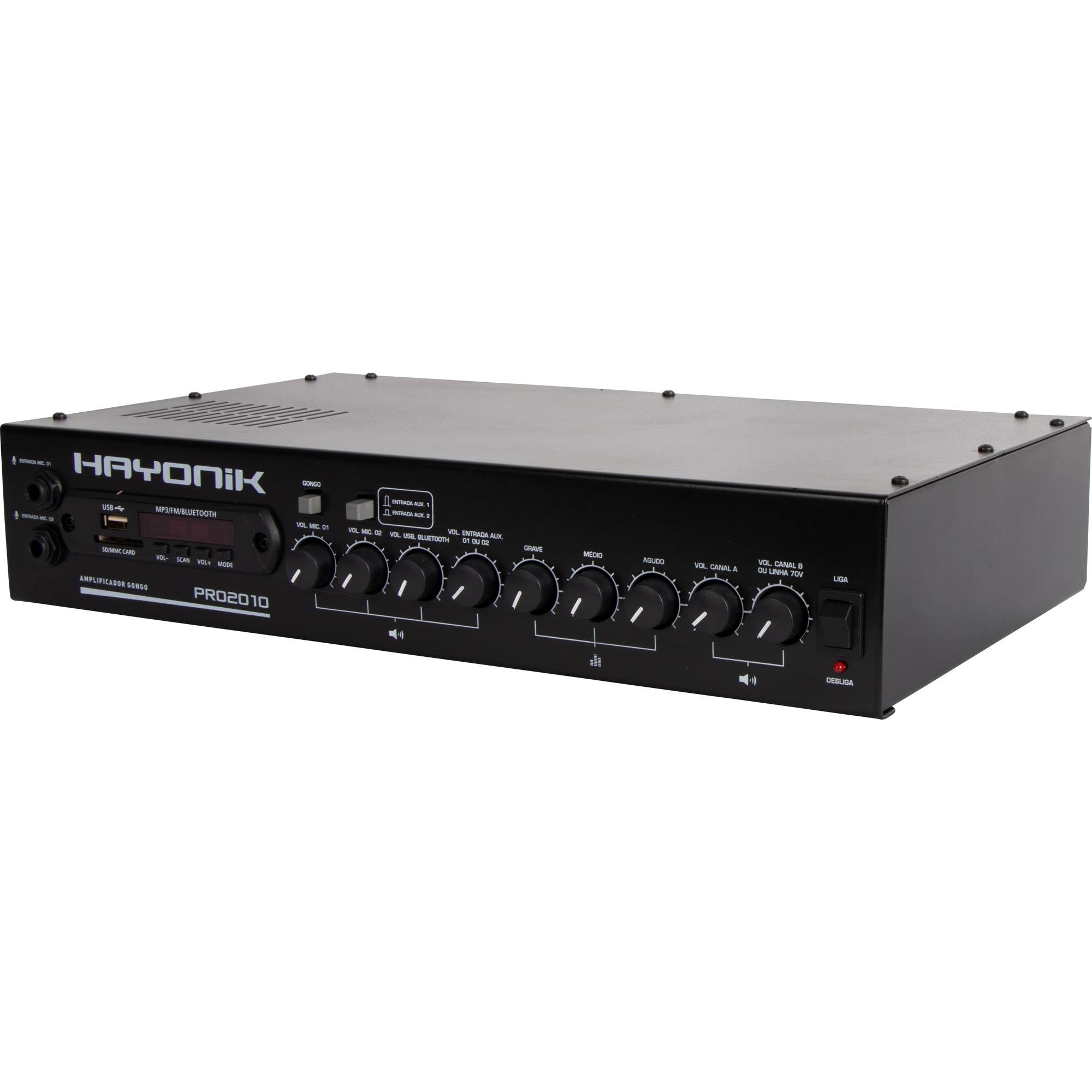 Saídas: Até 2 Caixas de 8 Ohms ou 20 Caixas com Transformadores de Linha 70V