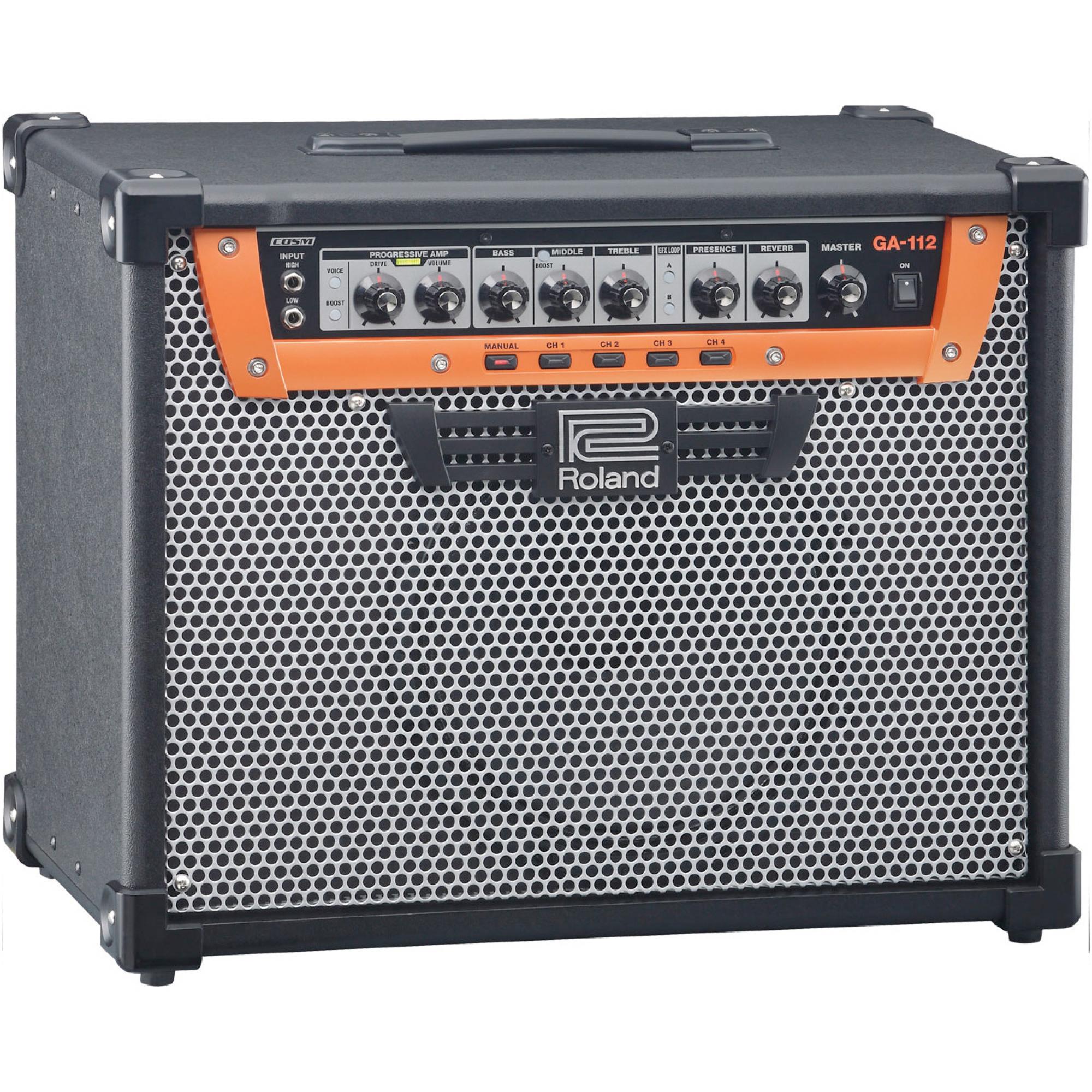 Personalizado e totalmente preparado para os palcos, o novo GA-112 são amplificadores de guitarra únicos e superpotentes. Com o mais novo modelo COSM de amplificador - Progressive Amp - a série GA proporciona a criação de timbres originais, controle intui itivo e a última palavra em conforto, expressão e tocabilidade. O modelo GA-112, com um único falante de 12 polegadas e 100W de potê ncia, é perfeito para ensaios em estúdios e palcos pequenos ou médios.