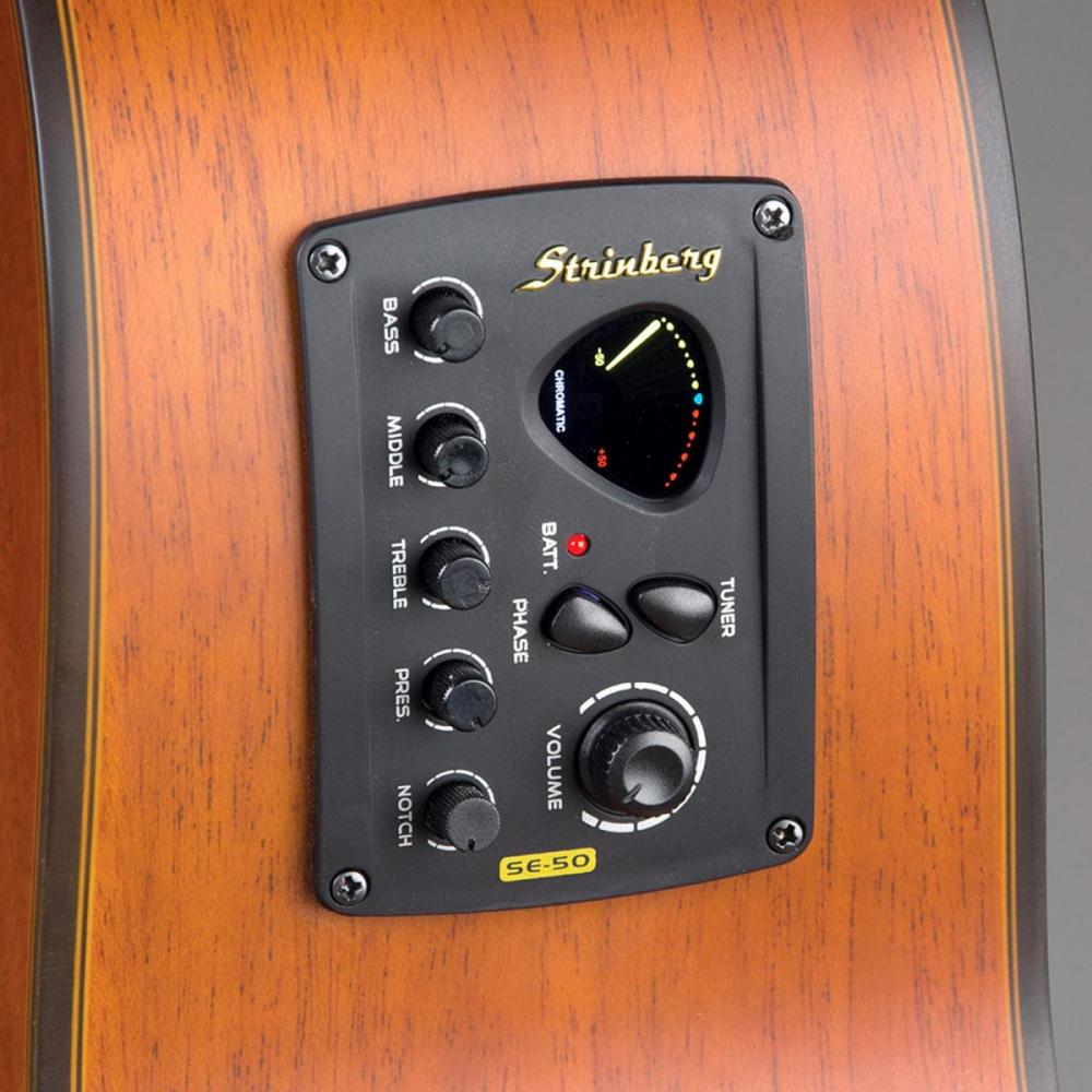 Controles: Volume, Grave, Médio, Agudo, Presence, Noch Filter, Phase, Afinador e check bateria