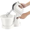 - Fácil de Guardar: Guarde os batedores e os ganchos para massas na base.