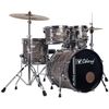 Os cascos são em basswood, uma madeira que já trabalhamos desde o começo, no entanto as peles também receberam um upgrade. Hoje as peles vem com um filme mais espesso, porosas e com anel abafador no bumbo.