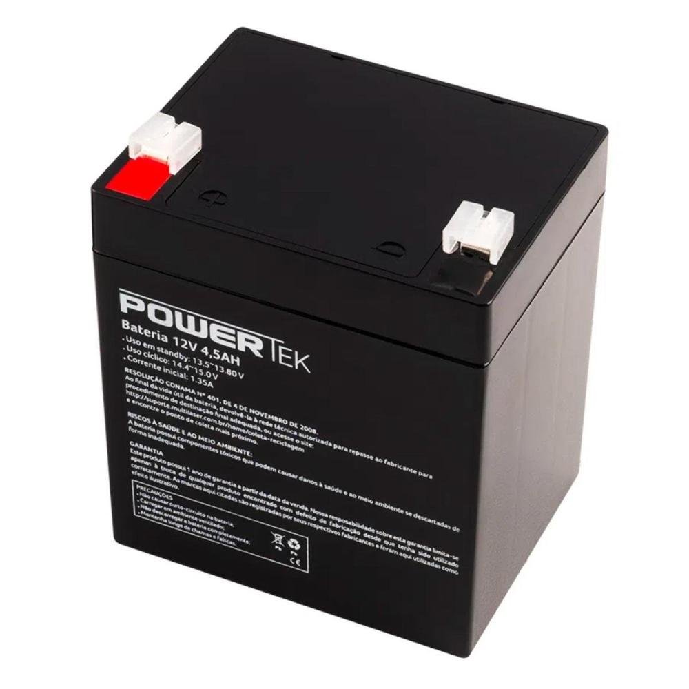A Bateria Selada 12V 4,5Ah EN009 Powertek é o modelo ideal para ser utilizado em caixa acústica e nobreak. Contando com uma construção robusta que evitando o vazamento de eletrólito. Garantindo segurança para que a bateria possa operar sem risco em diversas situações.