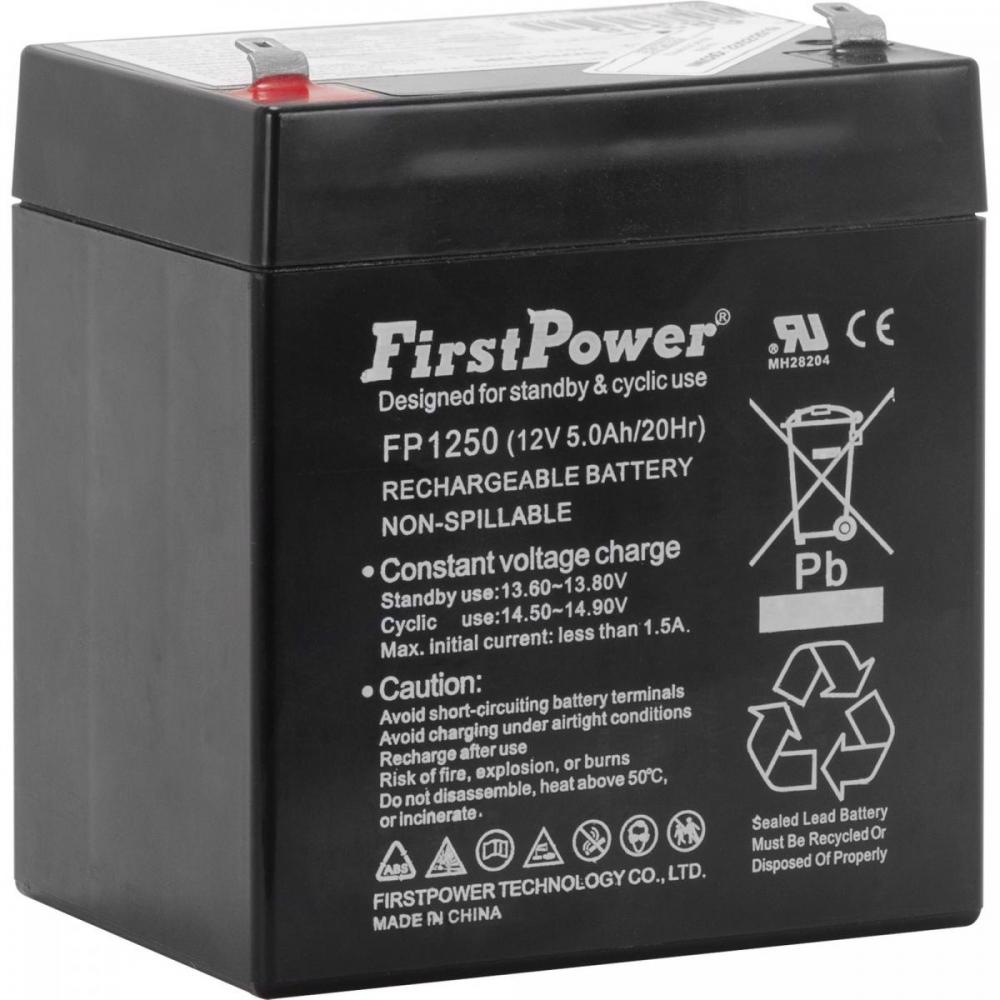 Bateria VRLA chumbo-ácida de 12V de tensão nominal e capacidade de 5 ,0Ah. Fabricada pela First Power, a FP 12-50 pode ser usada em diversas aplicações como luzes de emergência, brinquedos, UPS (Nobreak), entre outras.