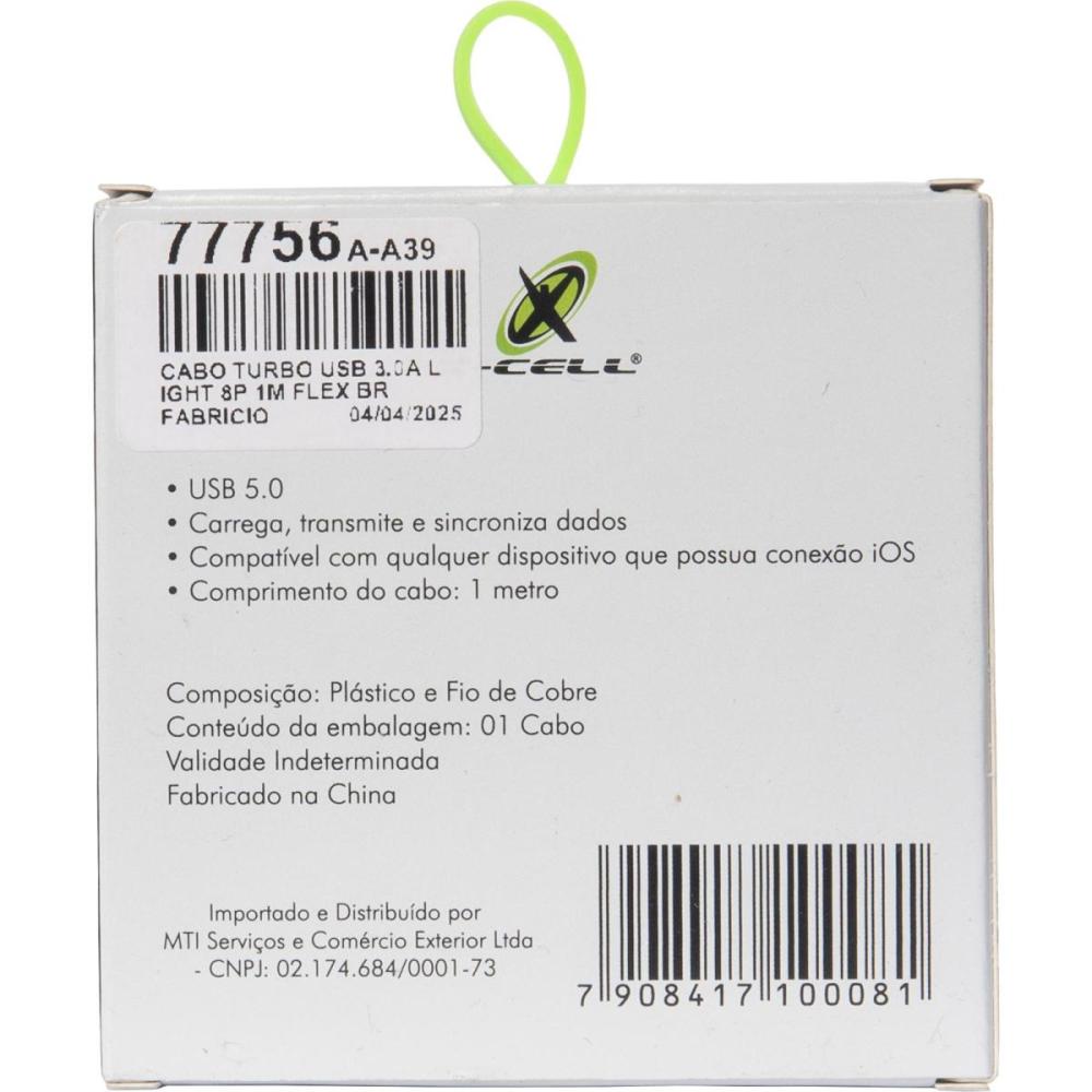 Cabo de Dados USB Lightning 5A 8 Pinos 1m Branco Flex