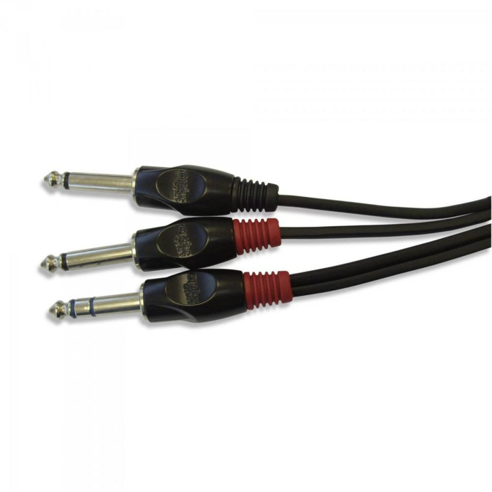 Cabo montado utilizando modelo BSS (2 x 0,18mm²) com conector P10 estéreo x 2 P10 mono, injetados em ZAMAC.