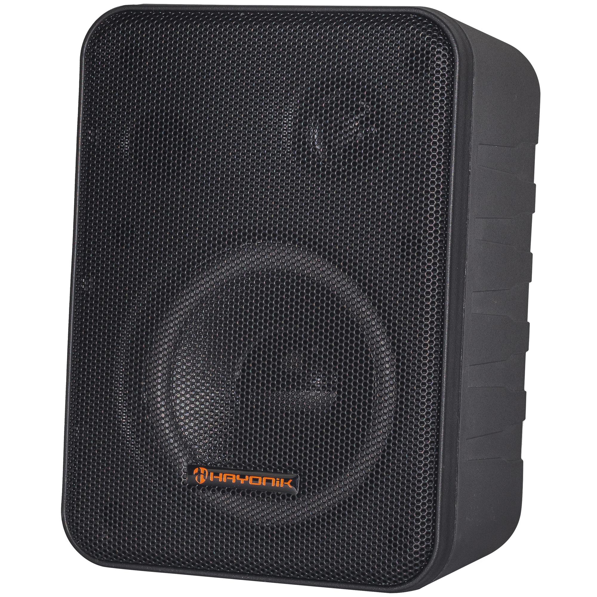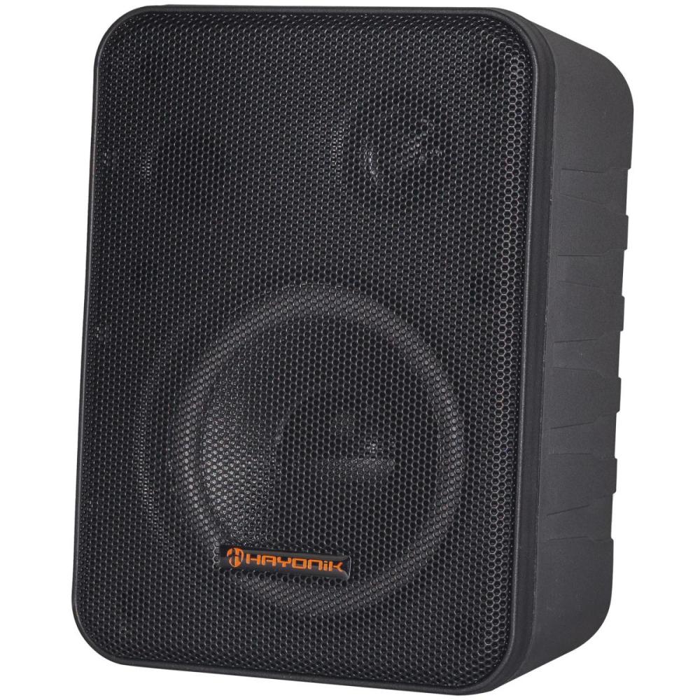 A linha de Caixas Ambience Line da HAYONIK pertencem a um sistema de caixas acústicas para instalação na maioria dos ambientes. Conta com um sistema em 2 Vias, onde dispõe de woofer de 4" para uma grande faixa de frequências, um tweeter de 0,5" onde a resposta em frequências altas é bem mais eficaz. Dispõe também de um sistema com alto-falantes de cone com suspensão, onde o local quer mais atenção em frequências baixas, além de já vir com o trafo de 70V instalado internamente.