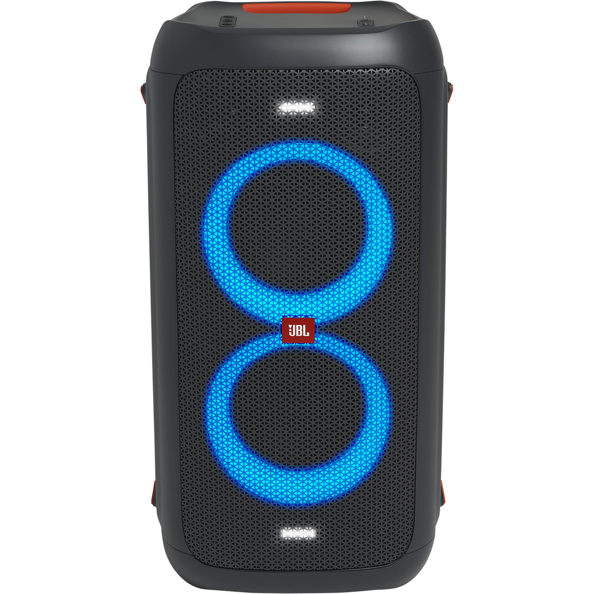 Toque as músicas mais quentes da cidade. A JBL PartyBox 100 reproduz o som potente da JBL com uma potência de 160 Watts. Comece a festa quando e onde quiser.