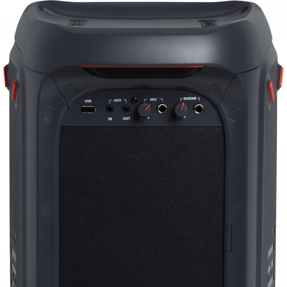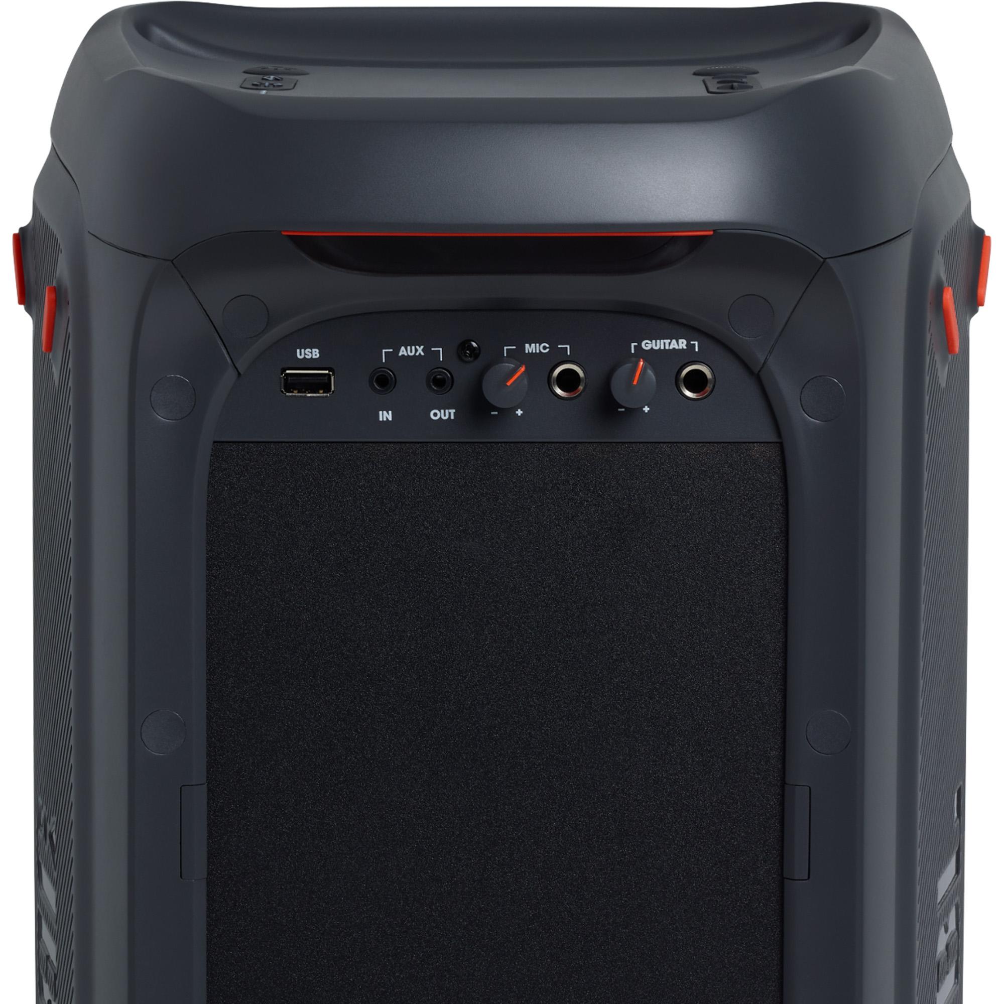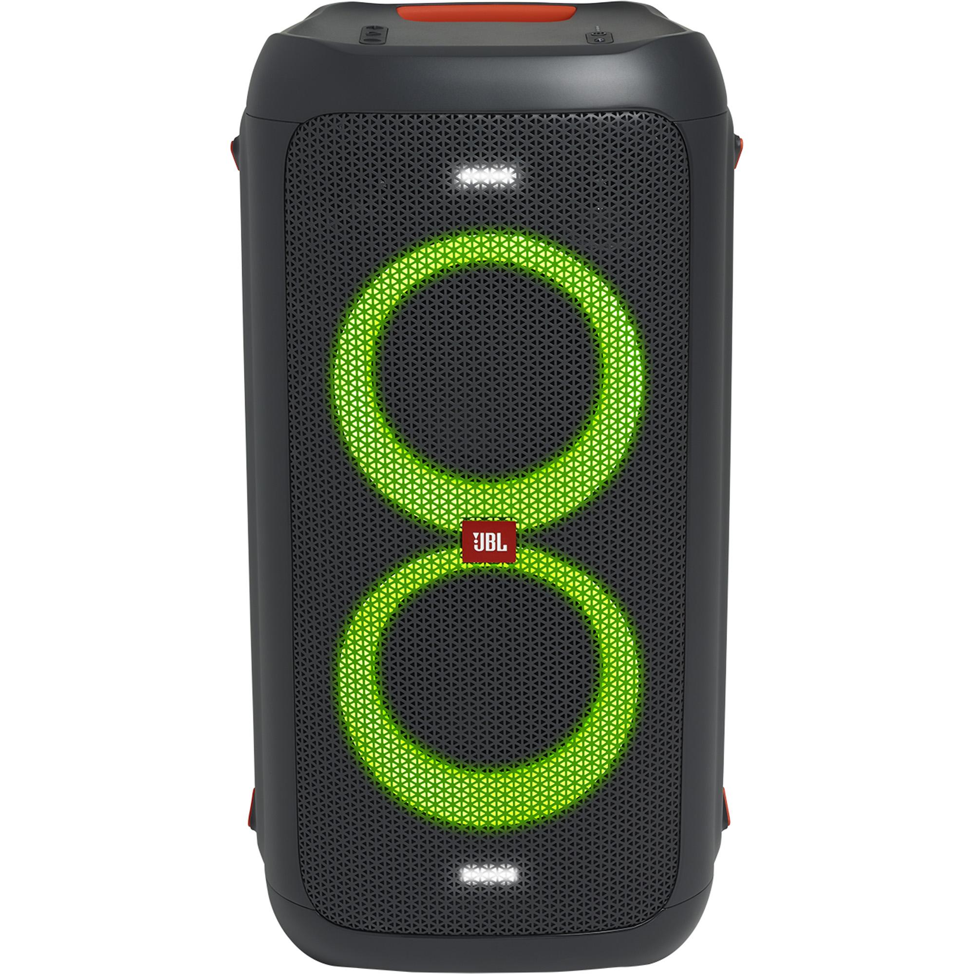 Leve a festa para qualquer lugar com a potência portátil da JBL PartyBox 100. Ilumine a noite! Escolha o show de luzes perfeito ou deixe que a música escolha por você. Misture tudo. Toque uma lista de reprodução de um pendrive USB ou pela transmissão via Bluetooth de um aparelho compatível. Faça um show com as entradas para guitarra, violão e microfone. Encontre o lugar perfeito. Monte sua caixa de som em um suporte e espalhe o som dinâmico da JBL por todo o ambiente. Divirta-se a noite toda com uma bateria que dura até 12 horas. Conecte a caixa de som na tomada e deixe a festa rolar solta.