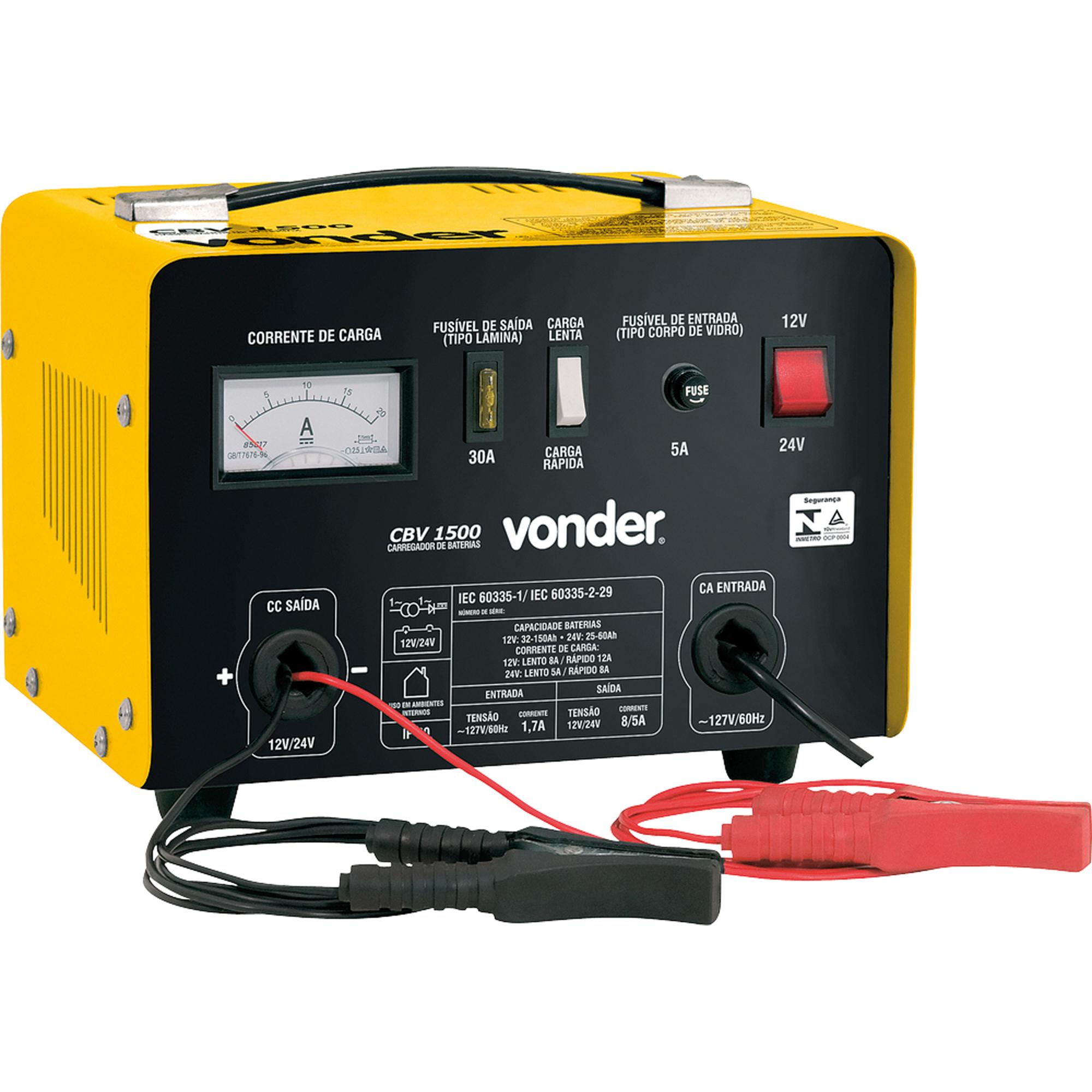 Os Carregadores de Baterias da VONDER possuem função carga rápida, que agiliza o processo de carga em situações de emergência. Com isso, um veículo pode ser ligado rapidamente, sendo necessário apenas 15 minutos de carga para efetuar a partida. O modelo CBV 1500 conta com grau de proteção IP20, seletor de tensão da bateria e fusível de entrada e saída.