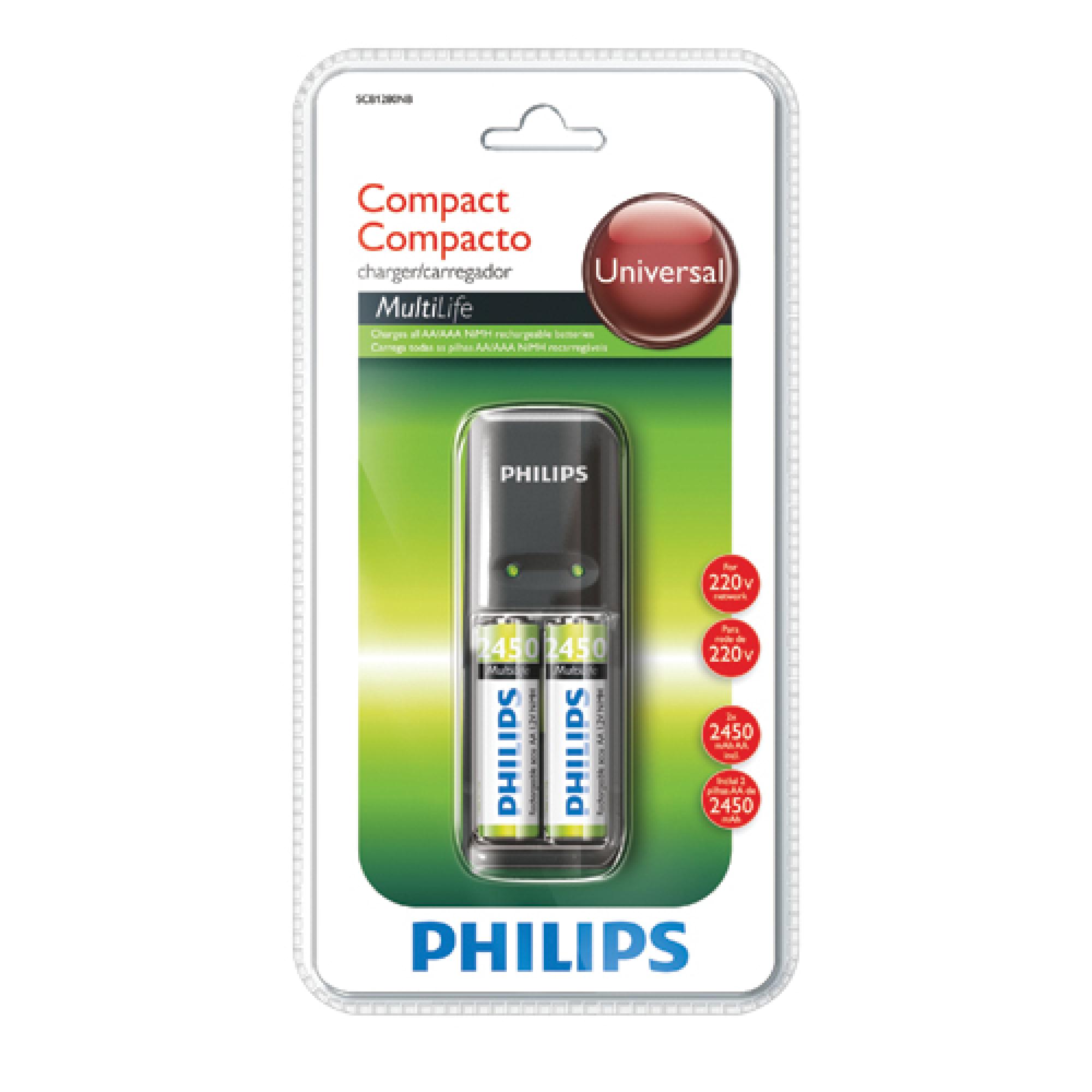 O Carregador PHILIPS SCB1280NB/78 permite que você o use de modo fácil e seguro, pois ele foi projetado para evitar que as pilhas sejam carregadas e danificadas se inseridas incorretamente.