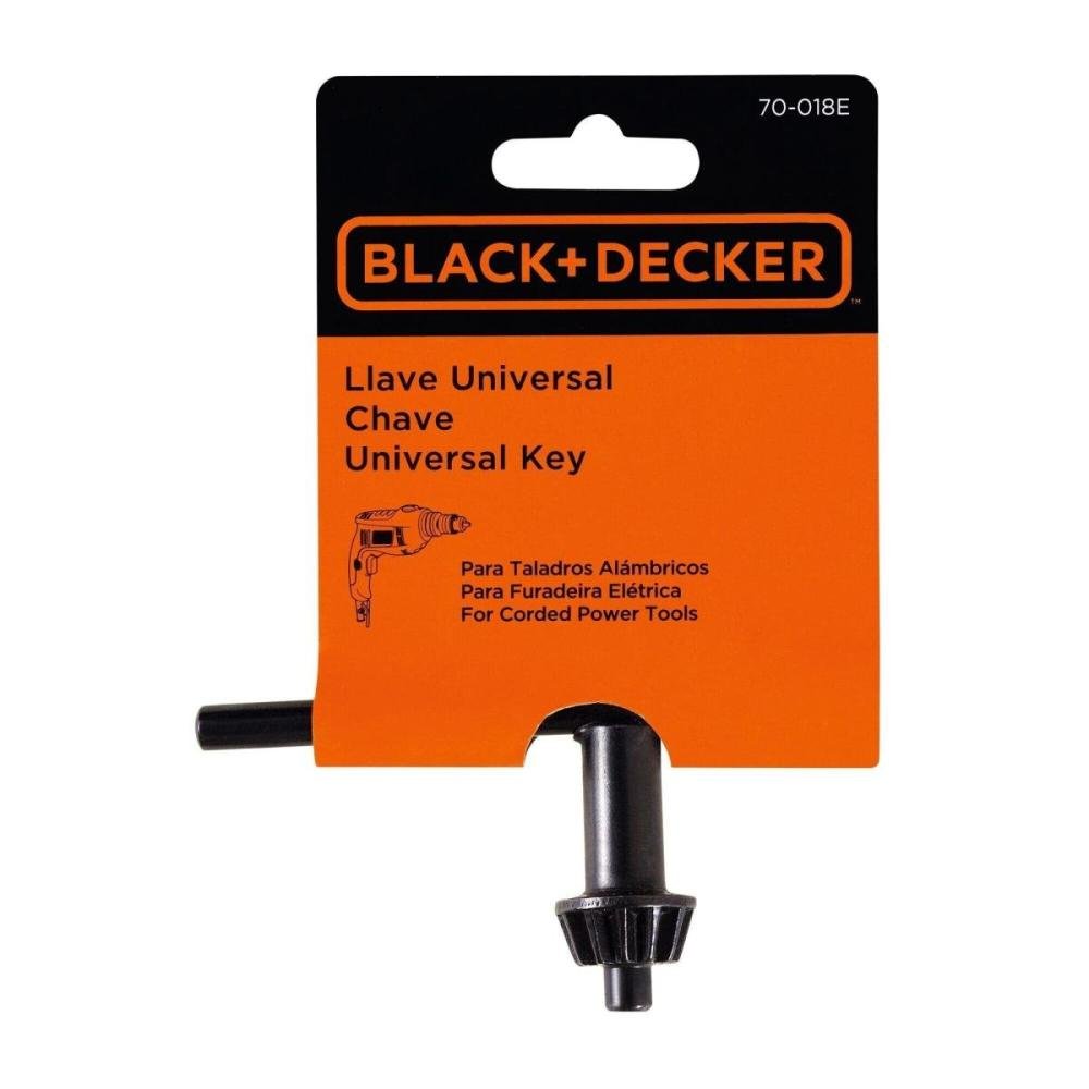 A Chave De Mandril Universal 70-018E da Black Decker é uma ferramenta projetada para ajudar na troca rápida e fácil de brocas ou pontas de parafusos em furadeiras elétricas. Ela é compatível com a maioria dos mandris de 3/8" e 1/2" das principais marcas do mercado.