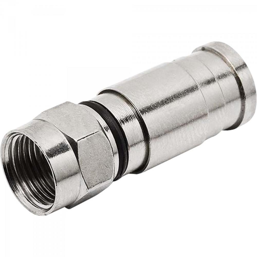 Plug conector de sinal elétrico, de tensão até 80V, com terminal F de compressão RG6 de uso profissional.