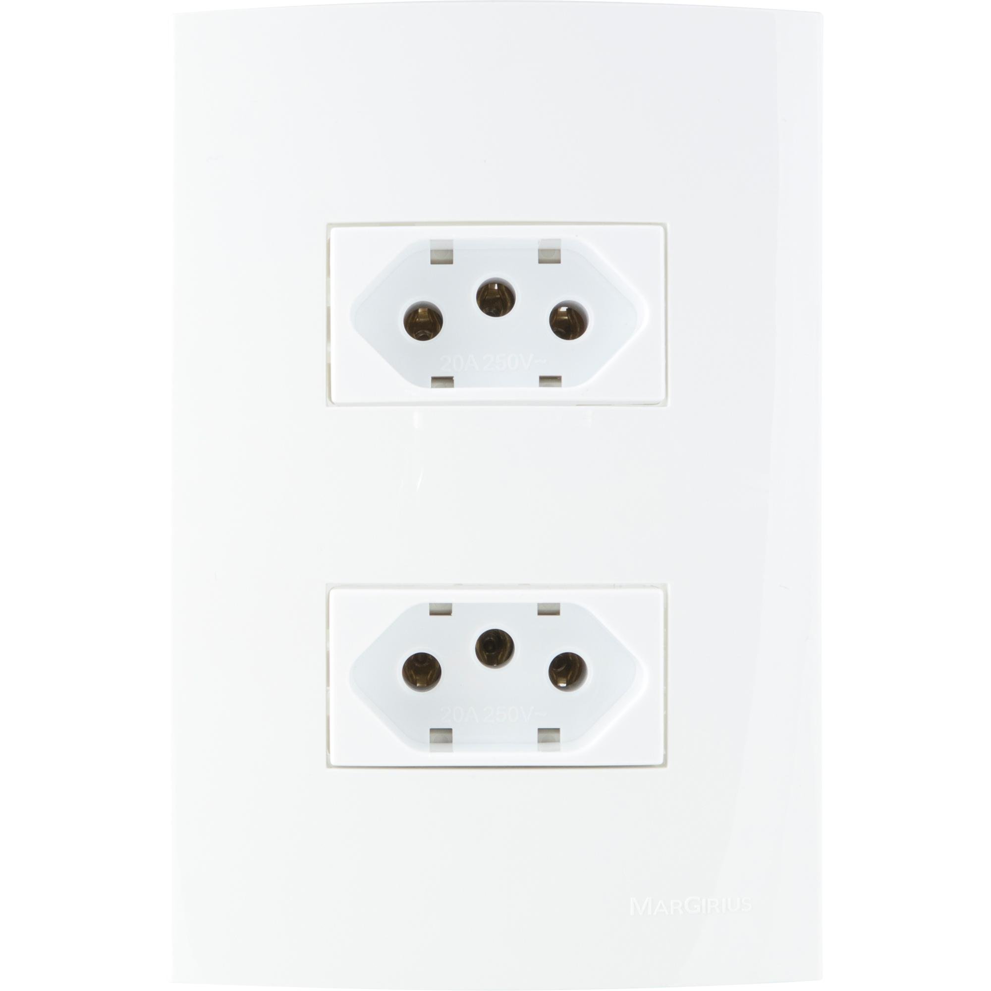 Conjunto 2 Tomadas 2P+T 20A Sleek 4x2 250V Branco Margirius