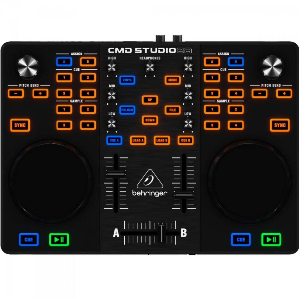 O CMD STUDIO 2A da Behringer foi projetado para ser um controlador MIDI de deck duplo que possui interface de áudio com 4 canais.