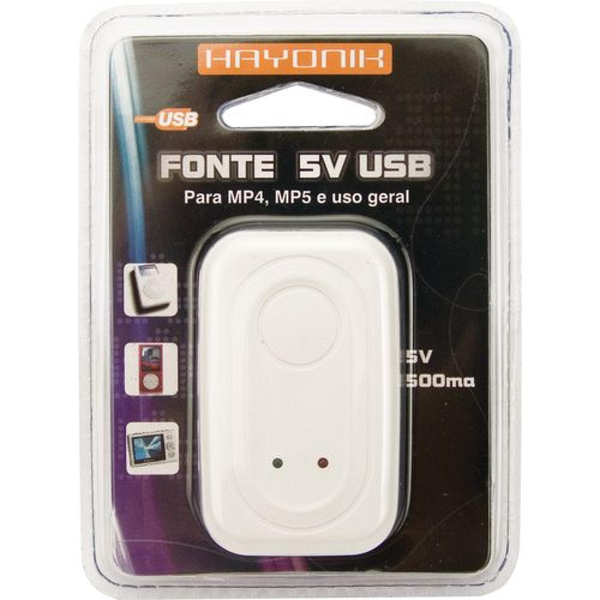 Fonte USB para MP3/MP4/MP5 5V 500mA Branca HAYONIK