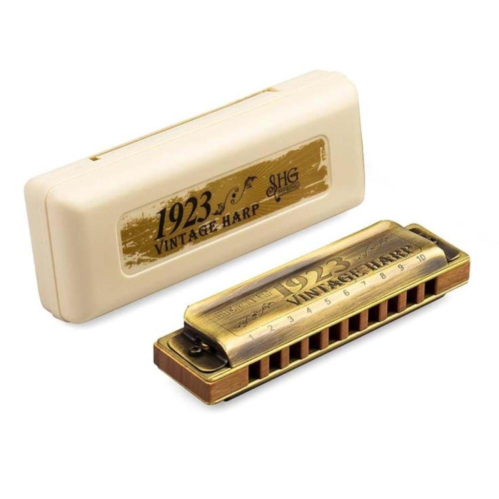 A Gaita Hering modelo da linha Vintage Harp, fabricado com revestimento em metal cromado e com detalhes em madeira de alta densidade. Possui afinação em Ré, com resposta imediata, um alto volume e um timbre encorpado.