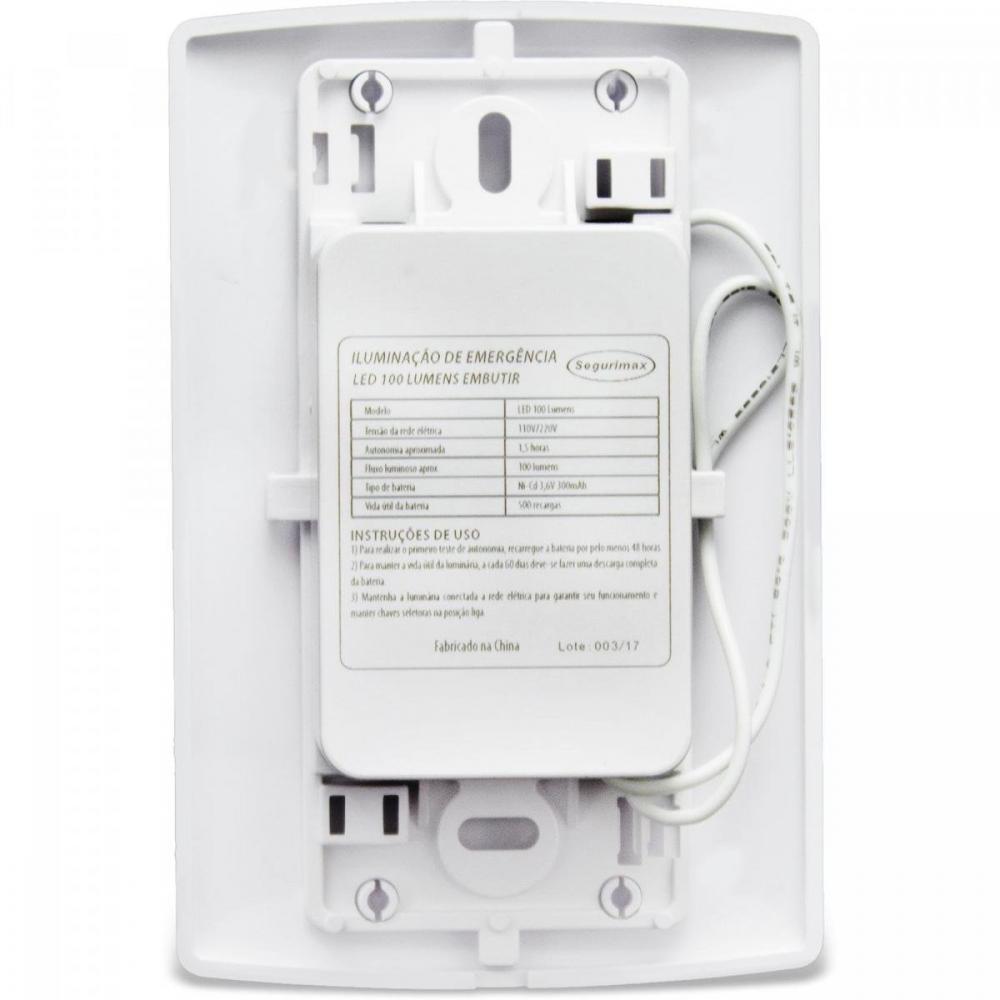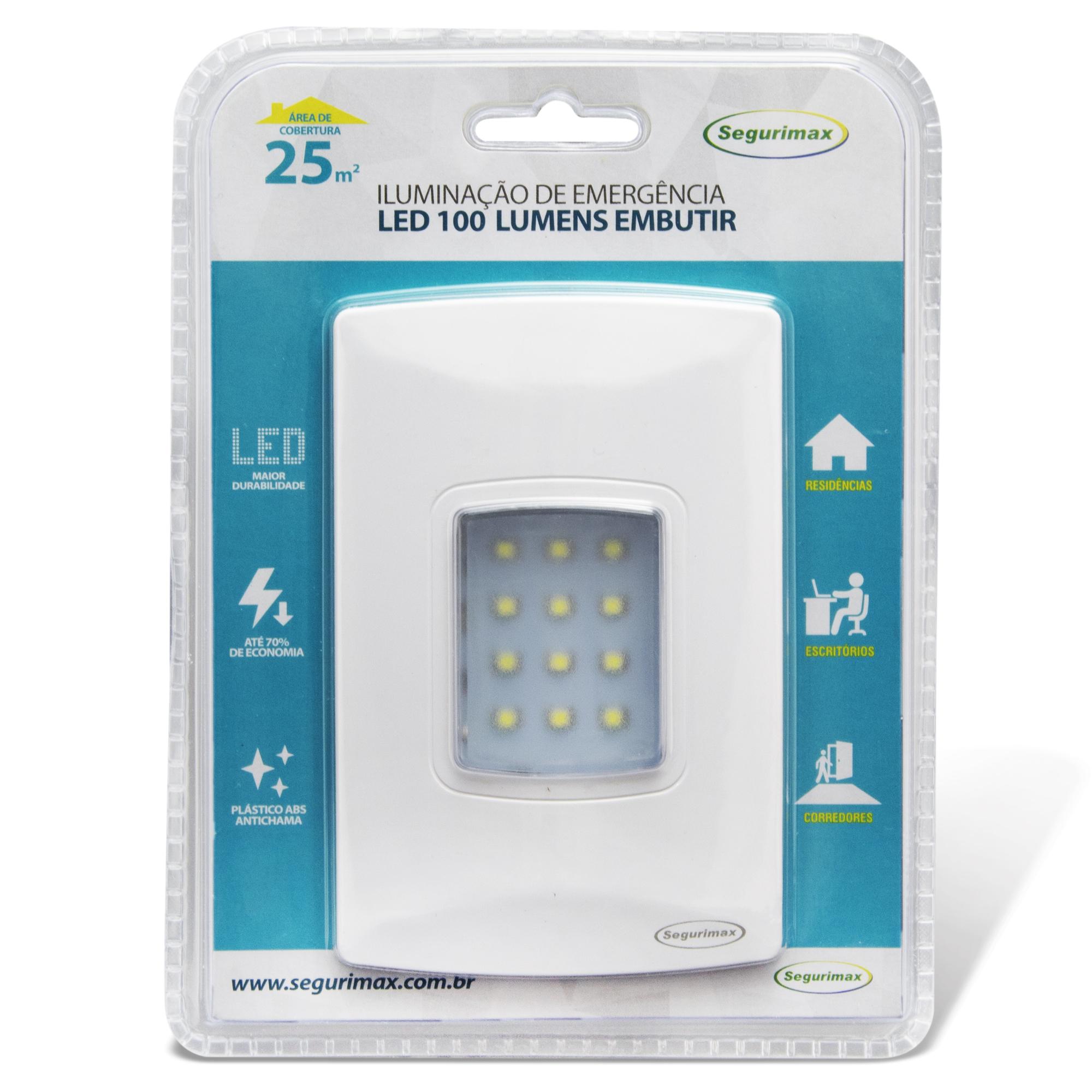 Iluminação de emergência autônoma de embutir LED 100 Lúmens SEGURIMAX