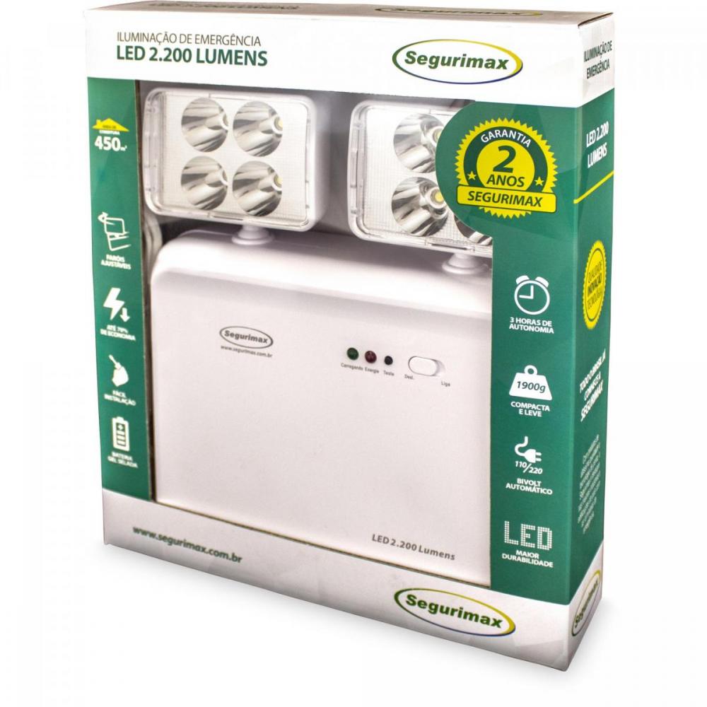 Iluminação de Emergência Bivolt LED 2200 Branca SEGURIMAX