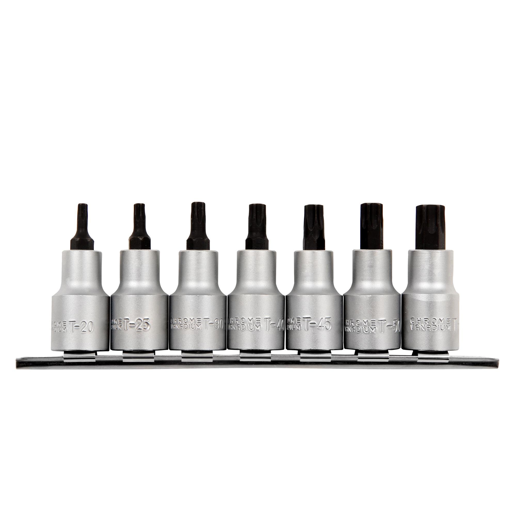 O conjunto contém 7 peças de diferentes tamanhos, que são compatíveis com encaixes de 1/2 polegada. Essas chaves soquete são projetadas para serem usadas em parafusos com cabeça hexalobular, também conhecidos como Torx, que são comumente usados em aplicações automotivas e industriais.