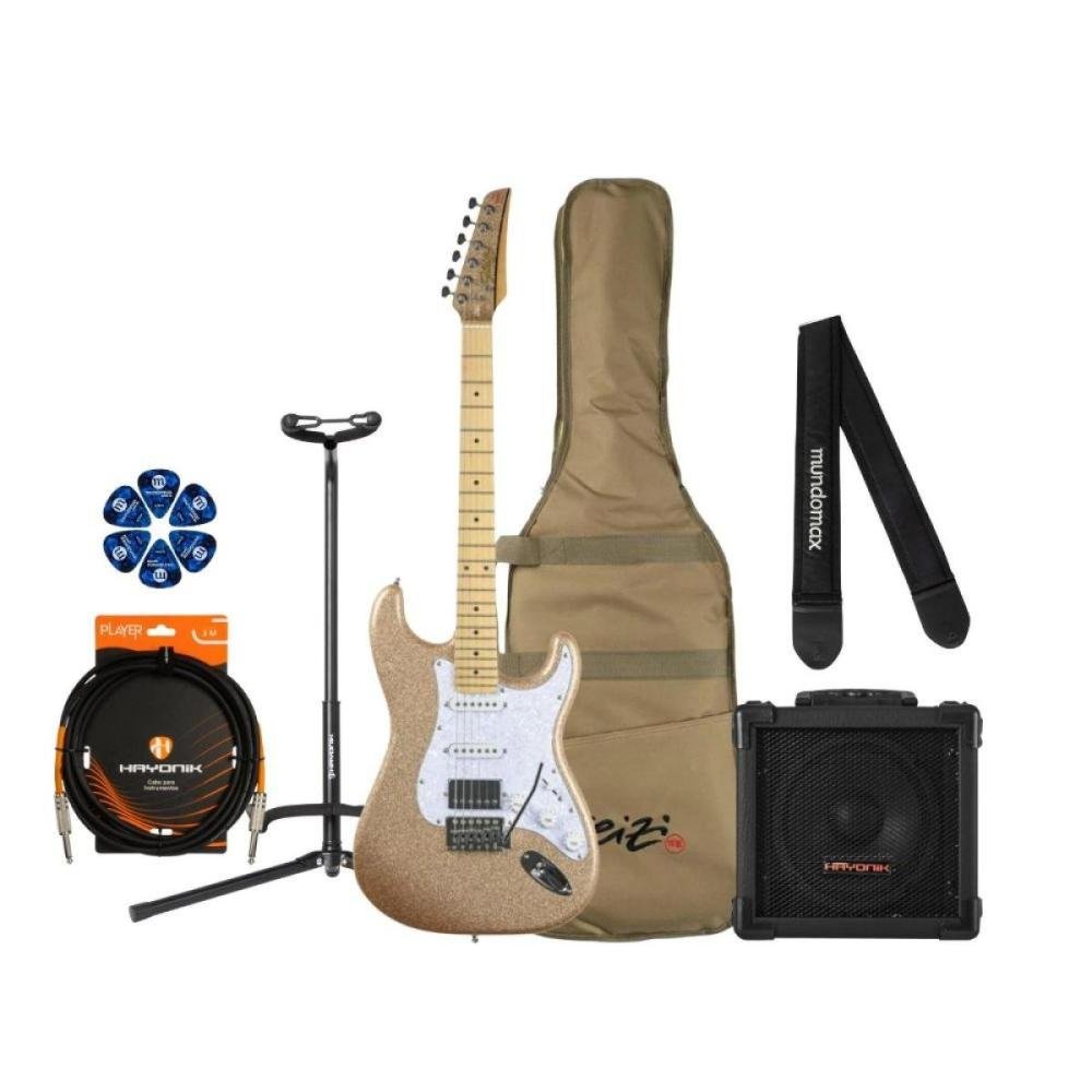 Título: Guitarra Seizi Fun Katana Musashi HSS Desert Gold Sparkle Com Bag