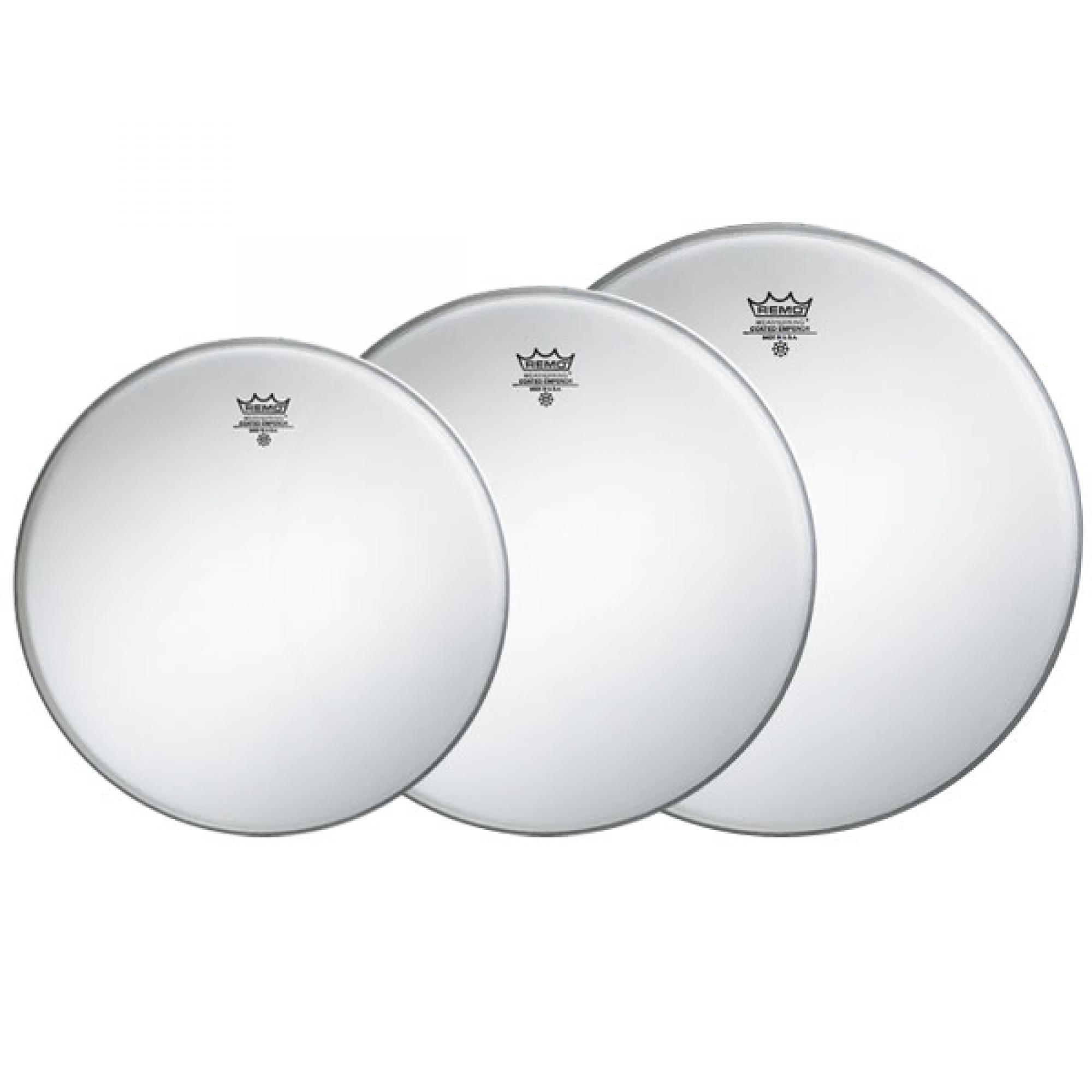 Kit de peles Emperor, porosa, filme duplo, nas medidas: 10", 12" e 14". Uma pele com excelente durabilidade. Produz um som encorpado pouco mais seco e controlado que o modelo Ambassador, sem perder volume. Peles usadas por bateristas como:Travis Barker ( Blink 182 ), Kenny Aronoff ( Studio Master ), Lars Ulrich ( Metallica ), Tré Cool ( Green Day ), Nicko McBrain ( Iron Maiden ), entre muitos outros. O preço do kit é 18% menor que a soma das peles avulsas.
