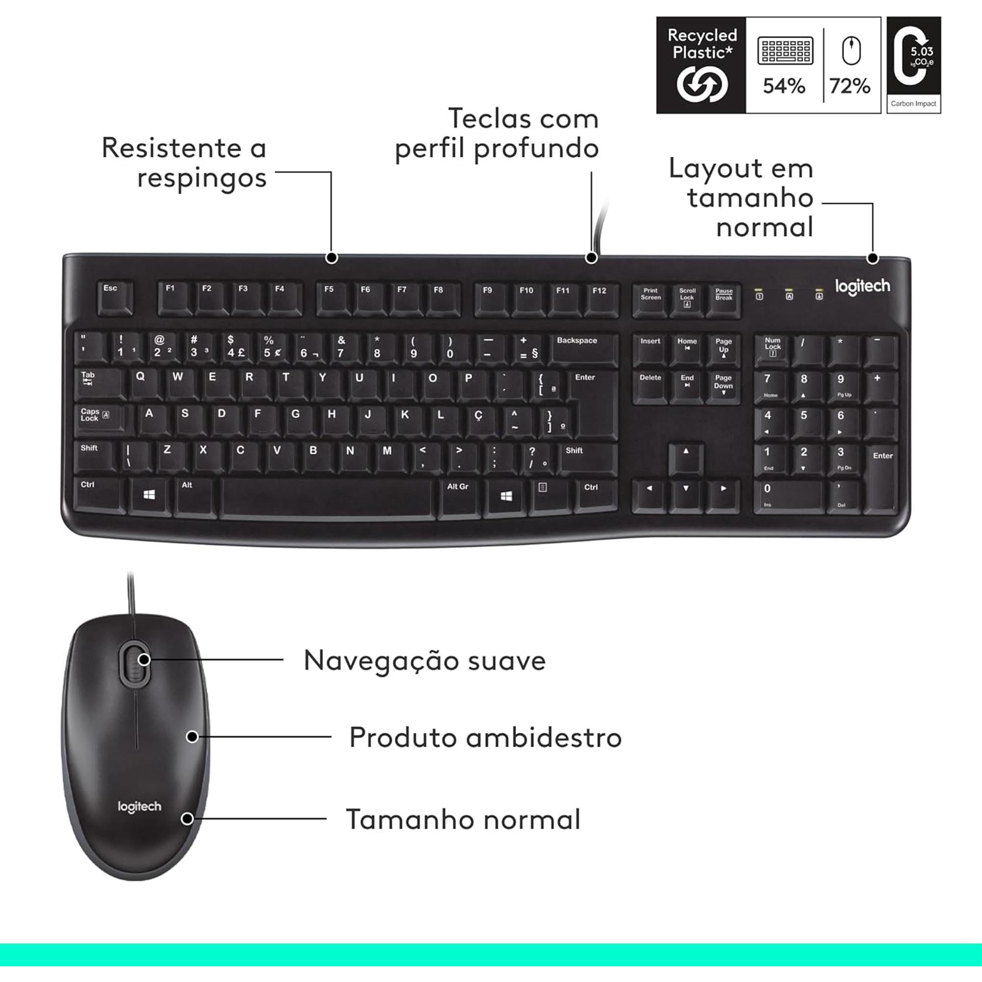 · Plásticos do teclado: 54% de material reciclado pós-consumidor