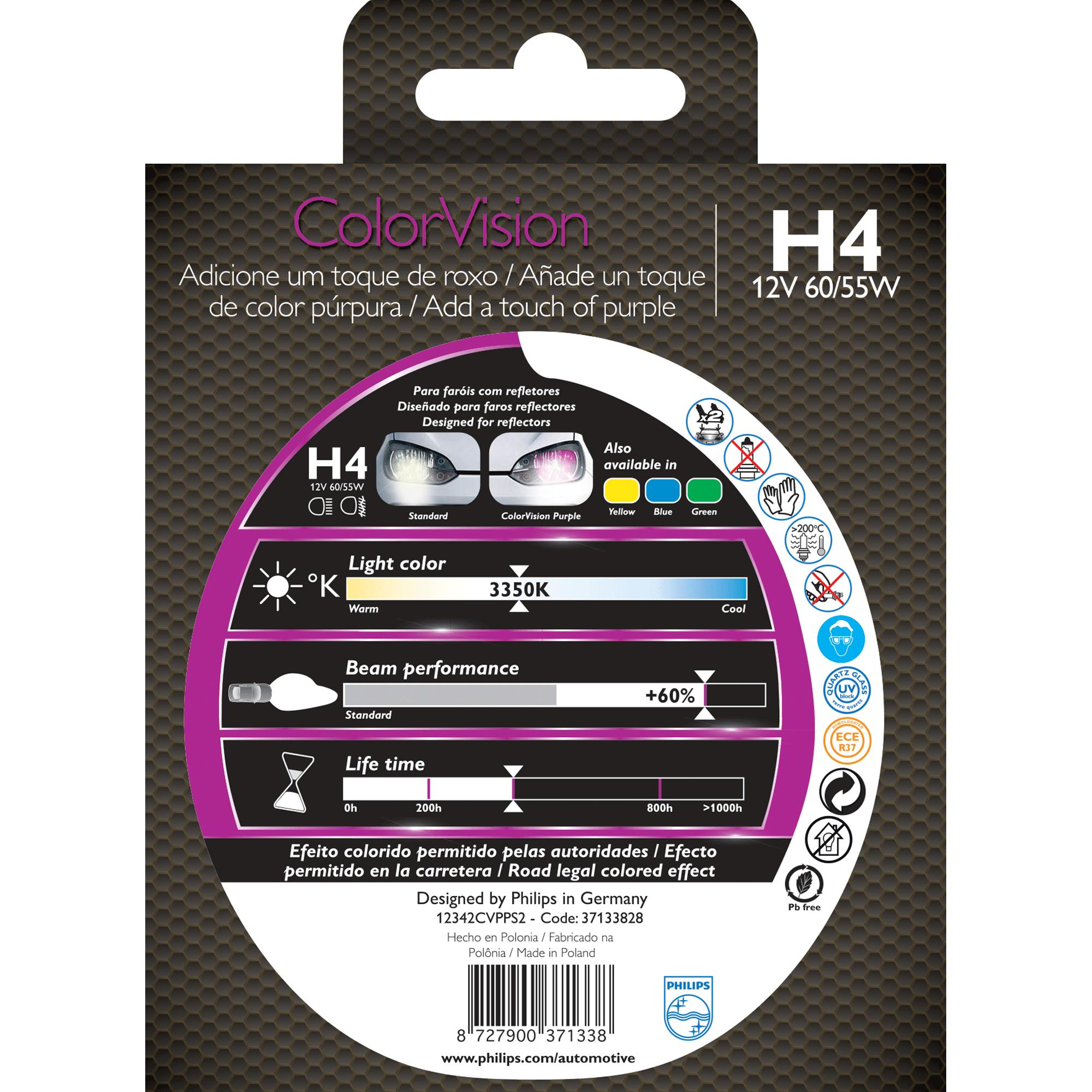 Lâmpada COLORVISION H4 55W 12V 60% Mais Luz Lilas