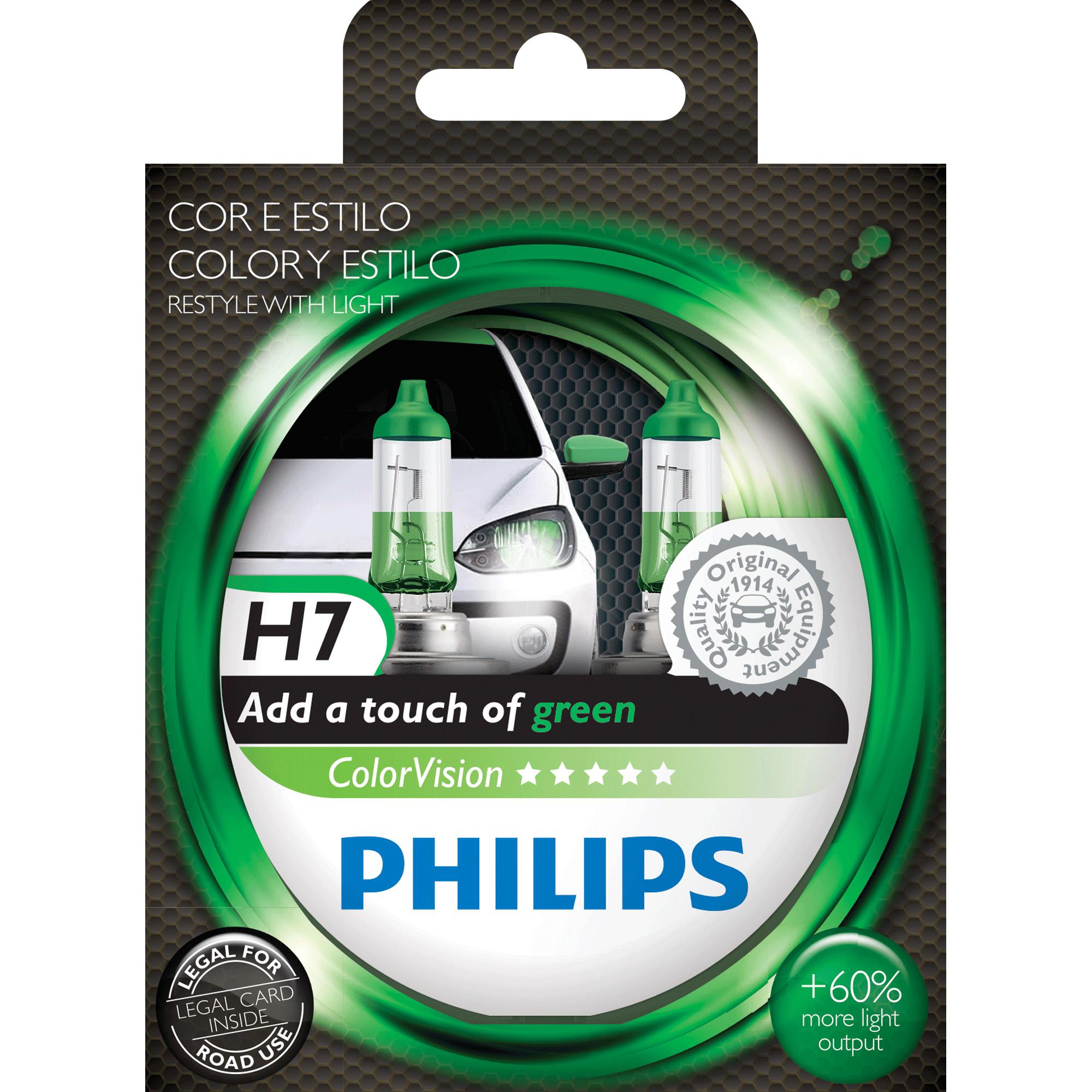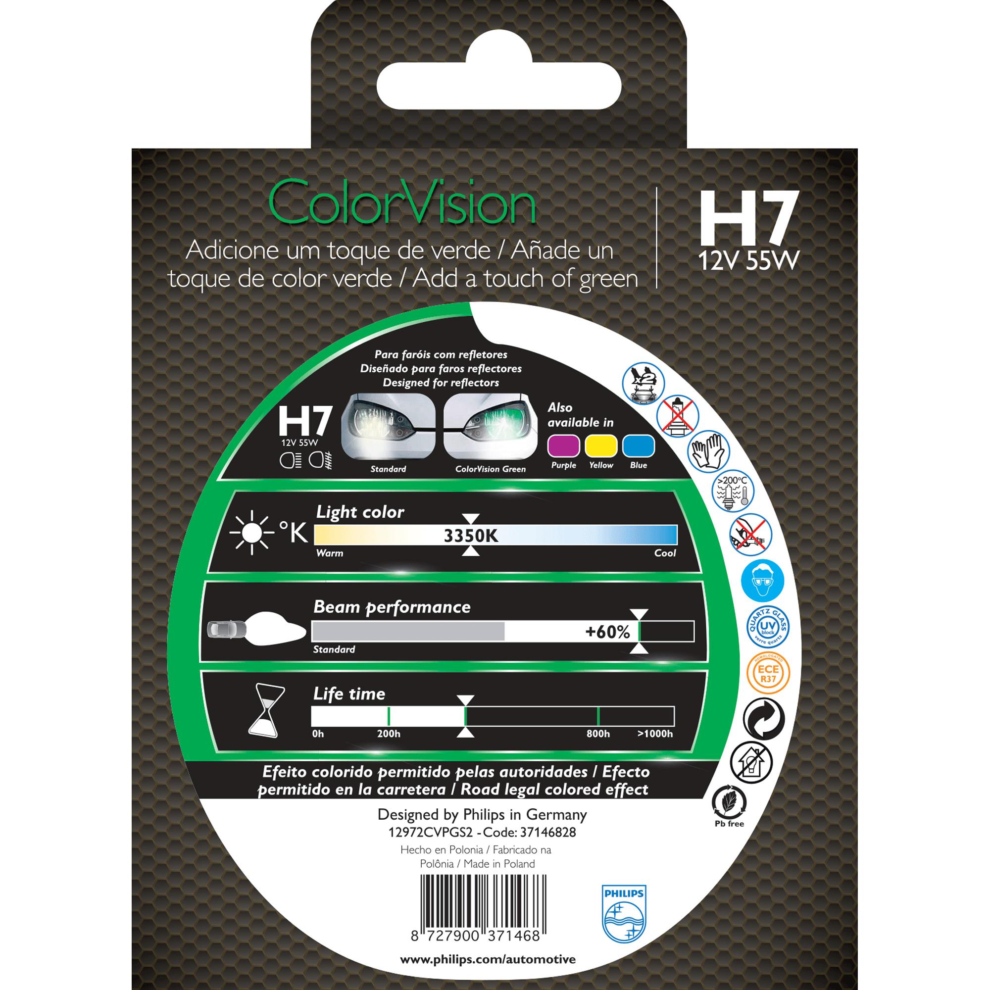 Lâmpada COLORVISION H7 55W 12V 60% Mais Luz Verde PHILIPS