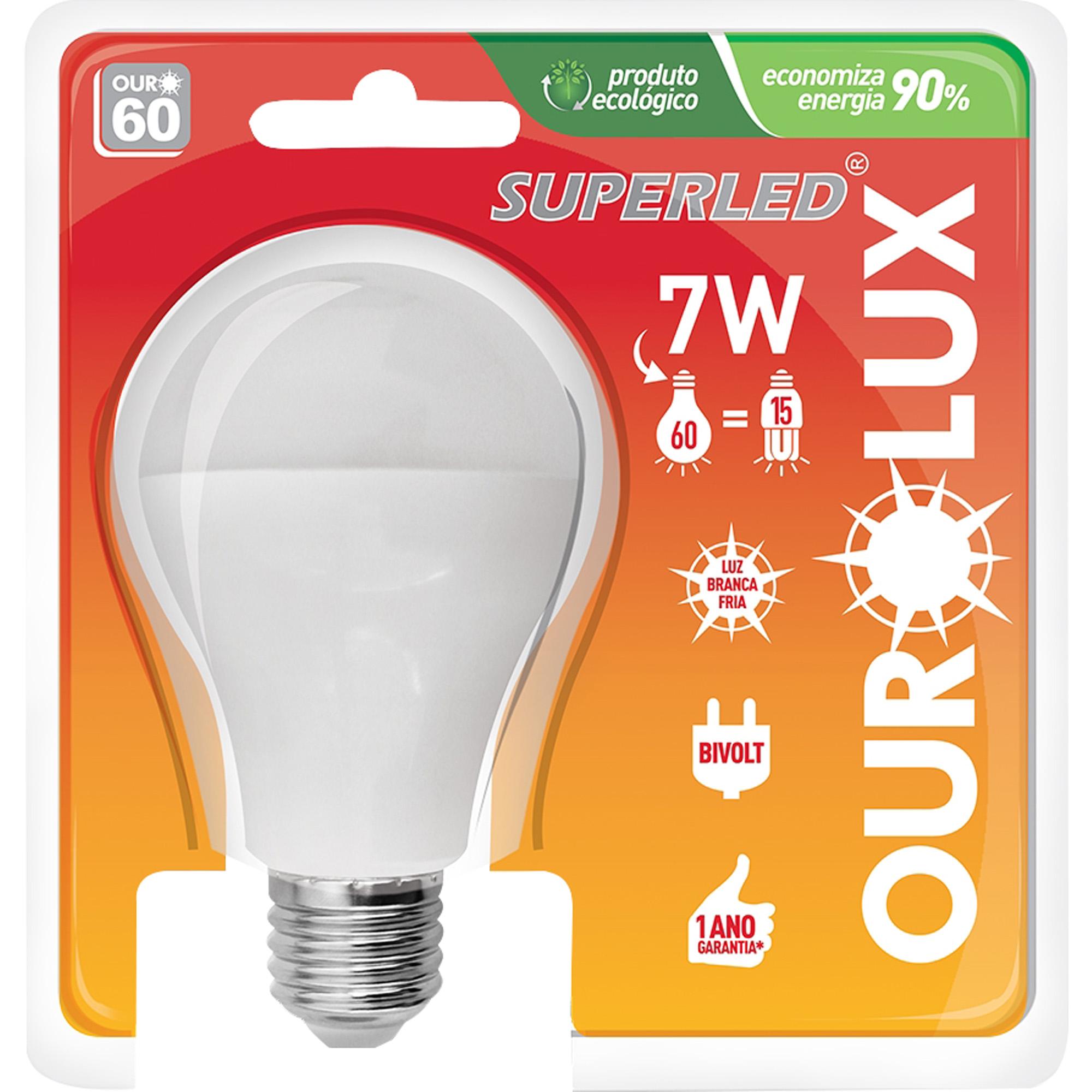 Ideal para ambientes residenciais e comerciais. Superled Ouro 60 6w subistitui lâmpda incandescente 60w, Bivolt, E27, temperatura de cor Amarela 2700k.