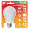 Ideal para ambientes residenciais e comerciais . Superled Ouro 100 9w subistitui lâmpada incandescente 100w, Bivolt, E27, temperatura de cor Amarela 2700k.