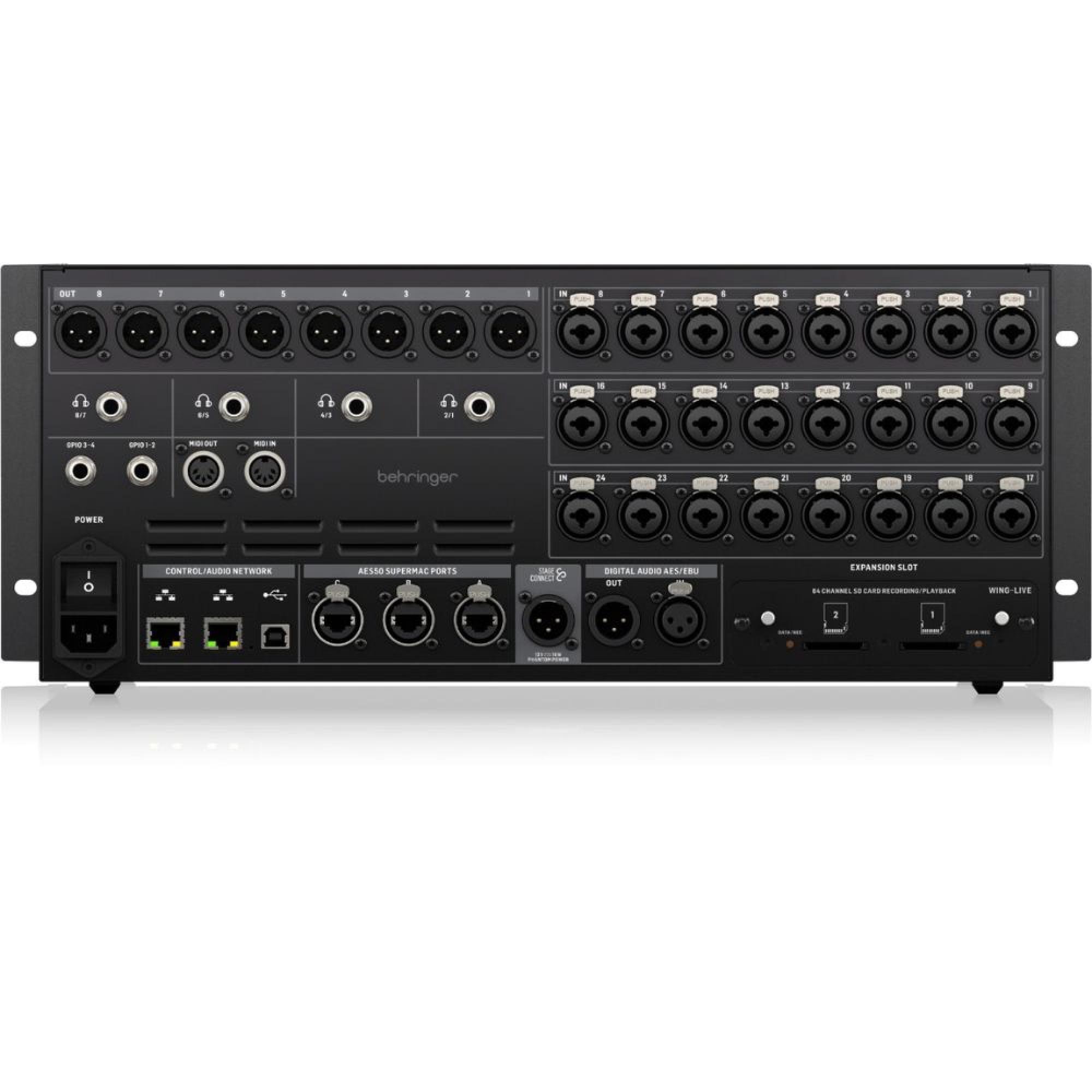 Entradas: 24 pré-amplificadores Midas PRO (entradas microfone/linha) e conectividade digital AES50, USB, AoIP, StageConnect – “all the digital I/O