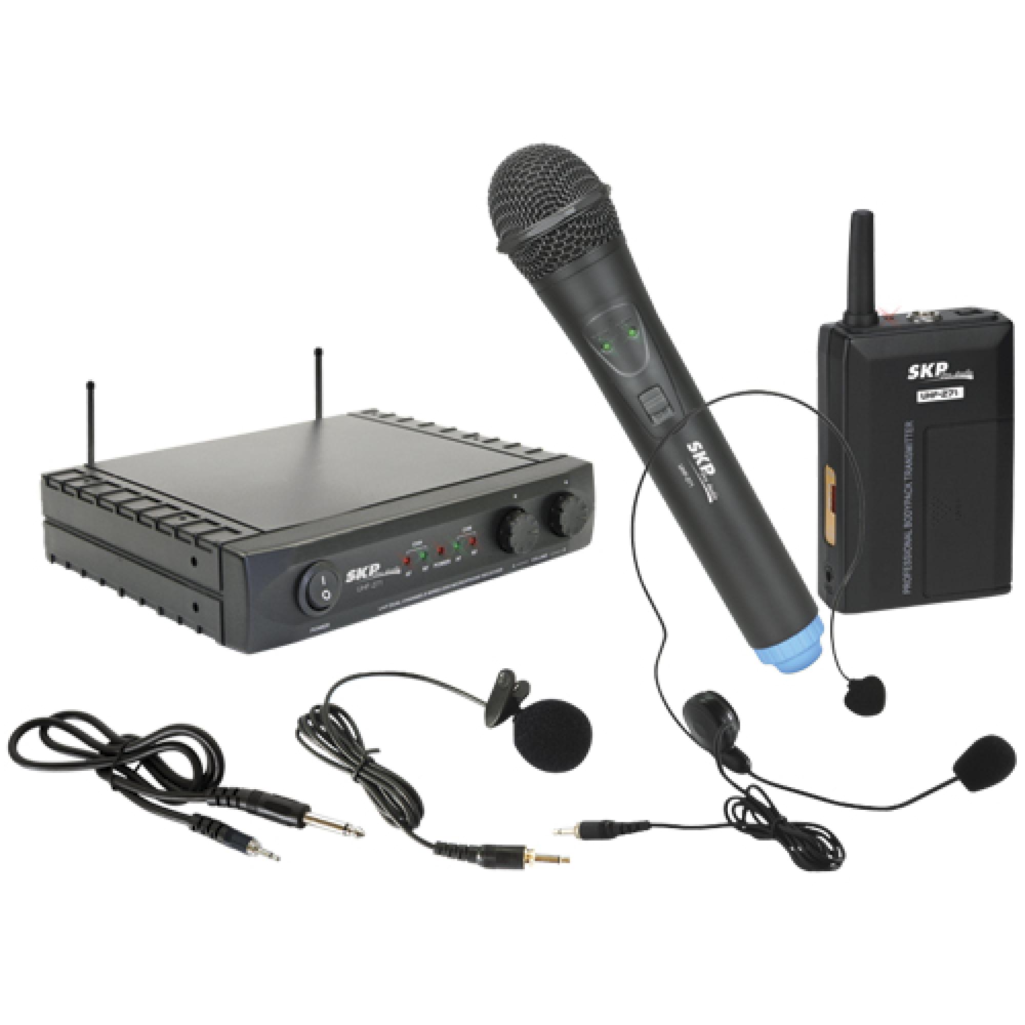 Sistema Triplo de Microfone sem Fio Mão/Lapela/Headset UHF-271 SKP