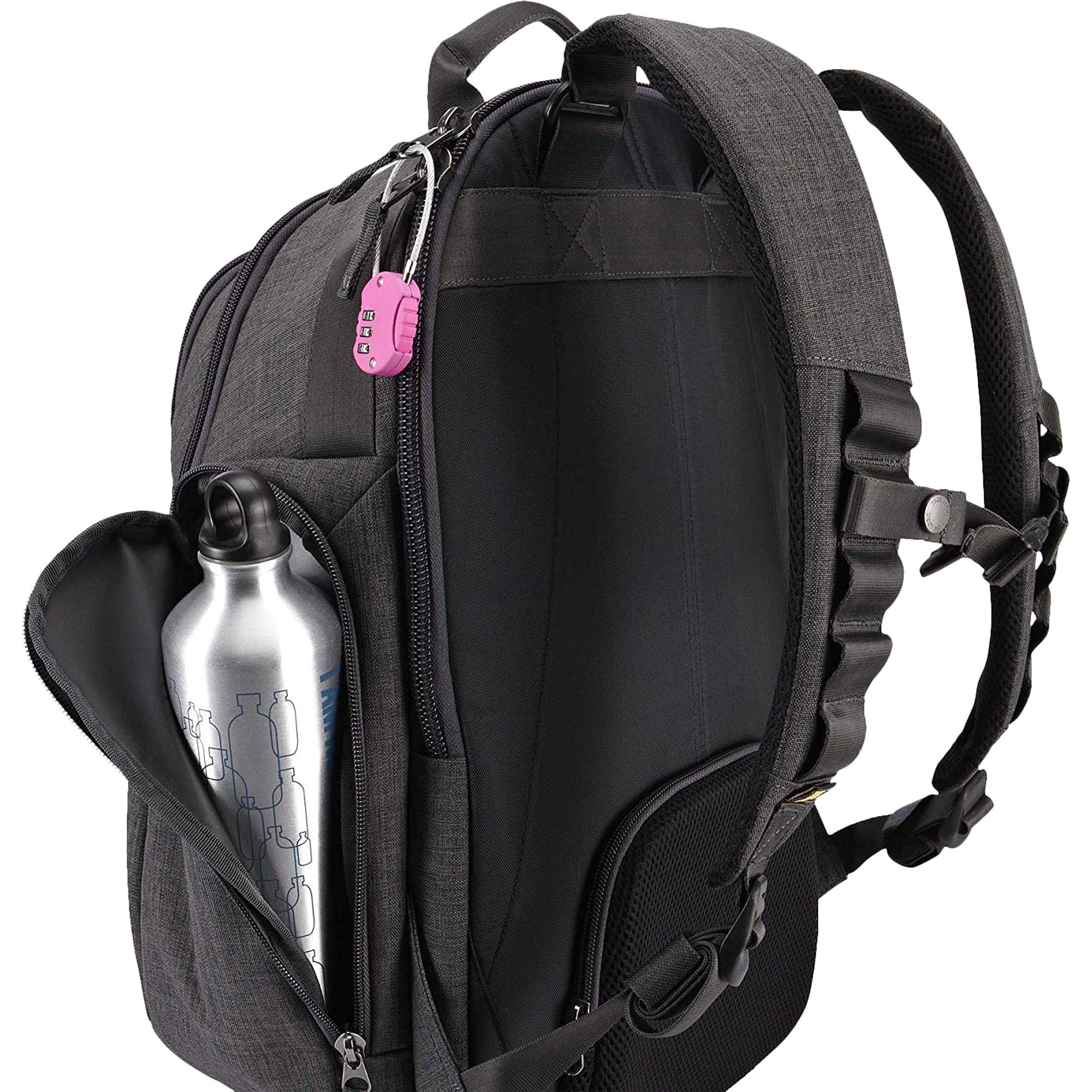 - Os zíperes em tamanho grande proporcionam acesso suave e são amplos o suficiente para permitir o uso de cadeados de bagagem;