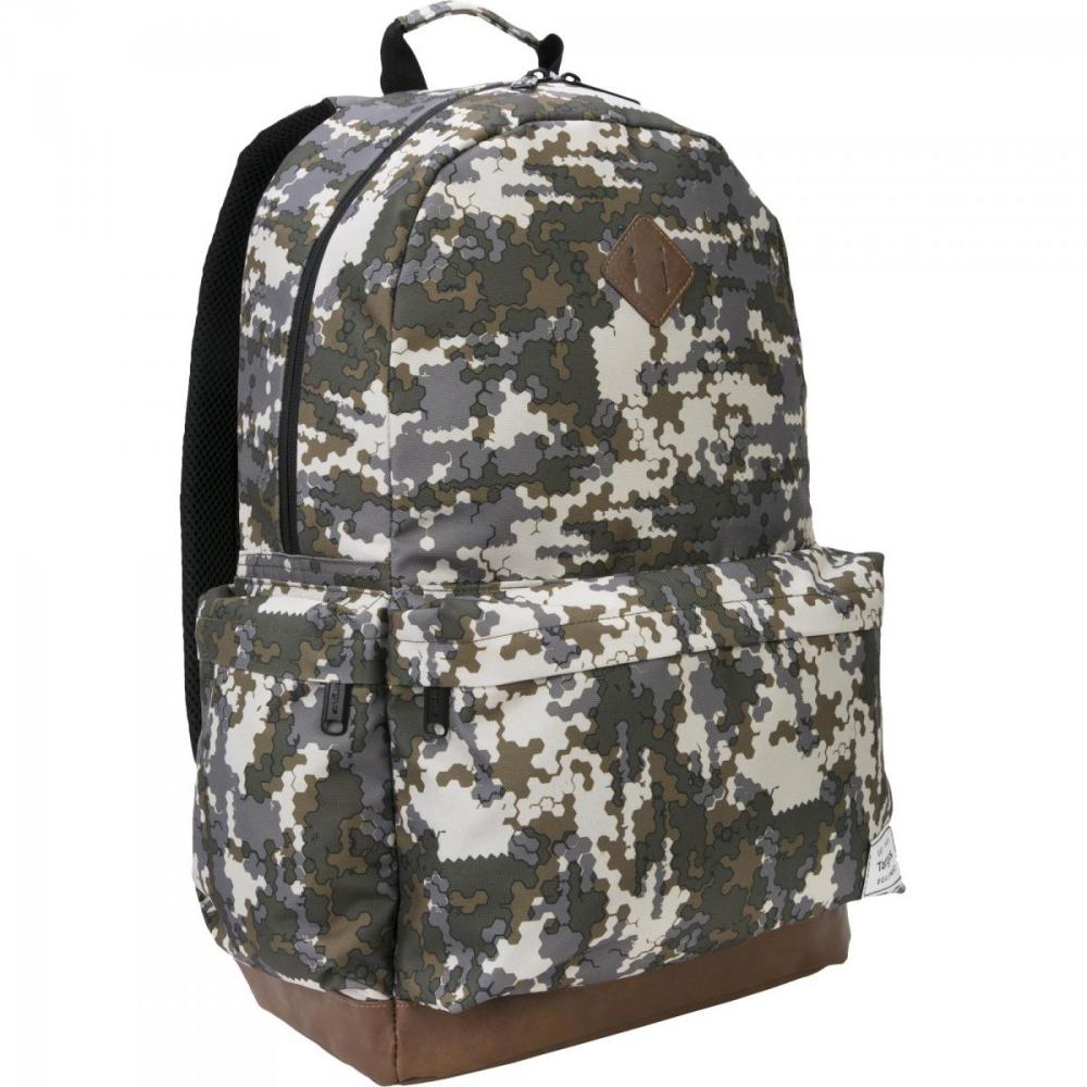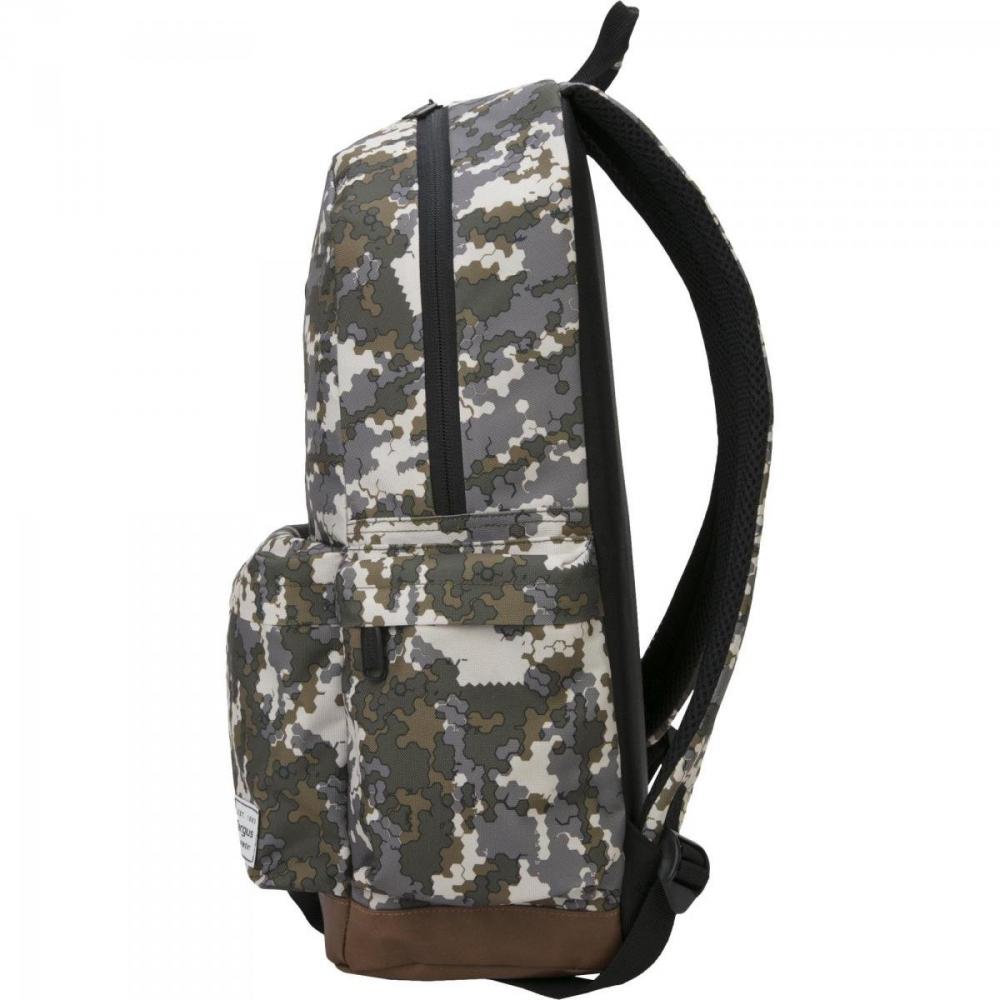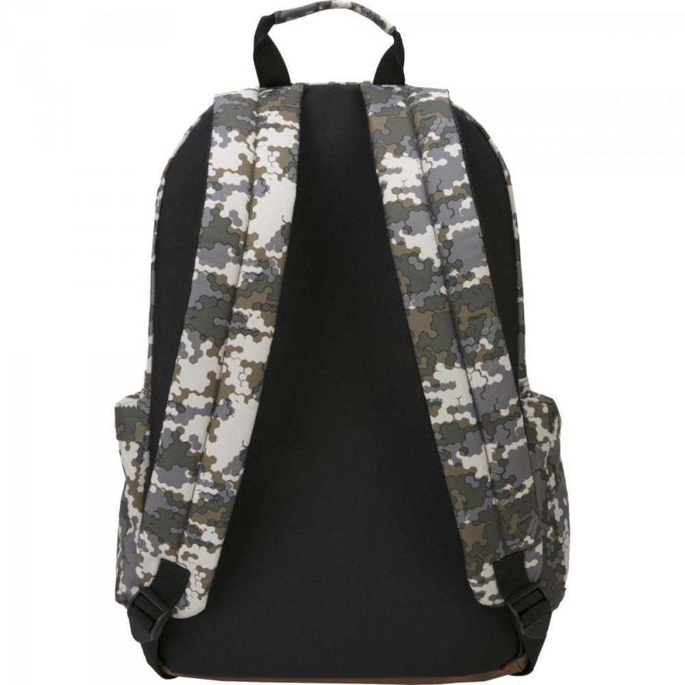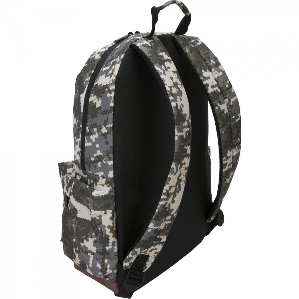 Cor: Estampa hexagonal camuflada cinza e verde.
