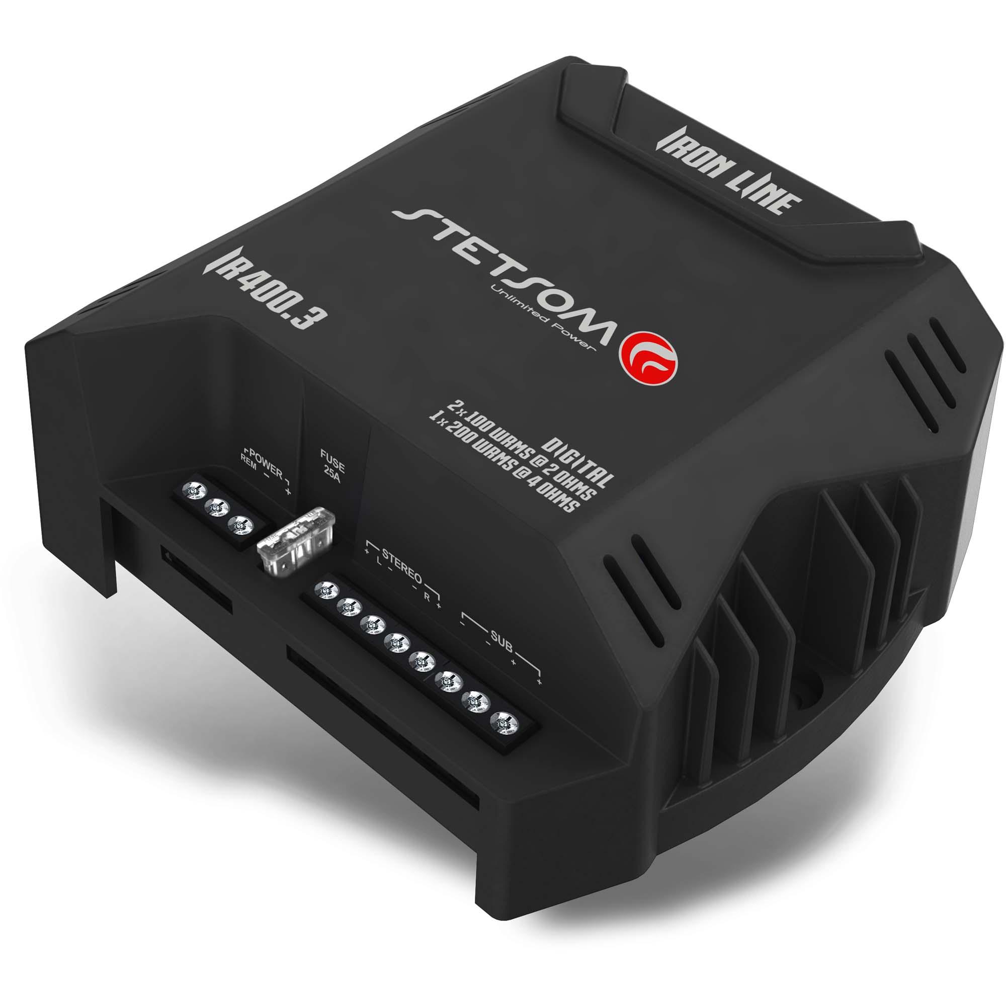 O IR400.3 é ideal para som interno, pode ser instalado com um kit original ou alto falantes de médio porte + 1 subwoofer. Possui 2 canais de 100W RMS a 2 Ohms + 1 canal de 200W RMS a 4 Ohms para o subwoofer. Pode ser instalado com entrada a fio (baixa impedância) ou entrada RCA (alta impedância).