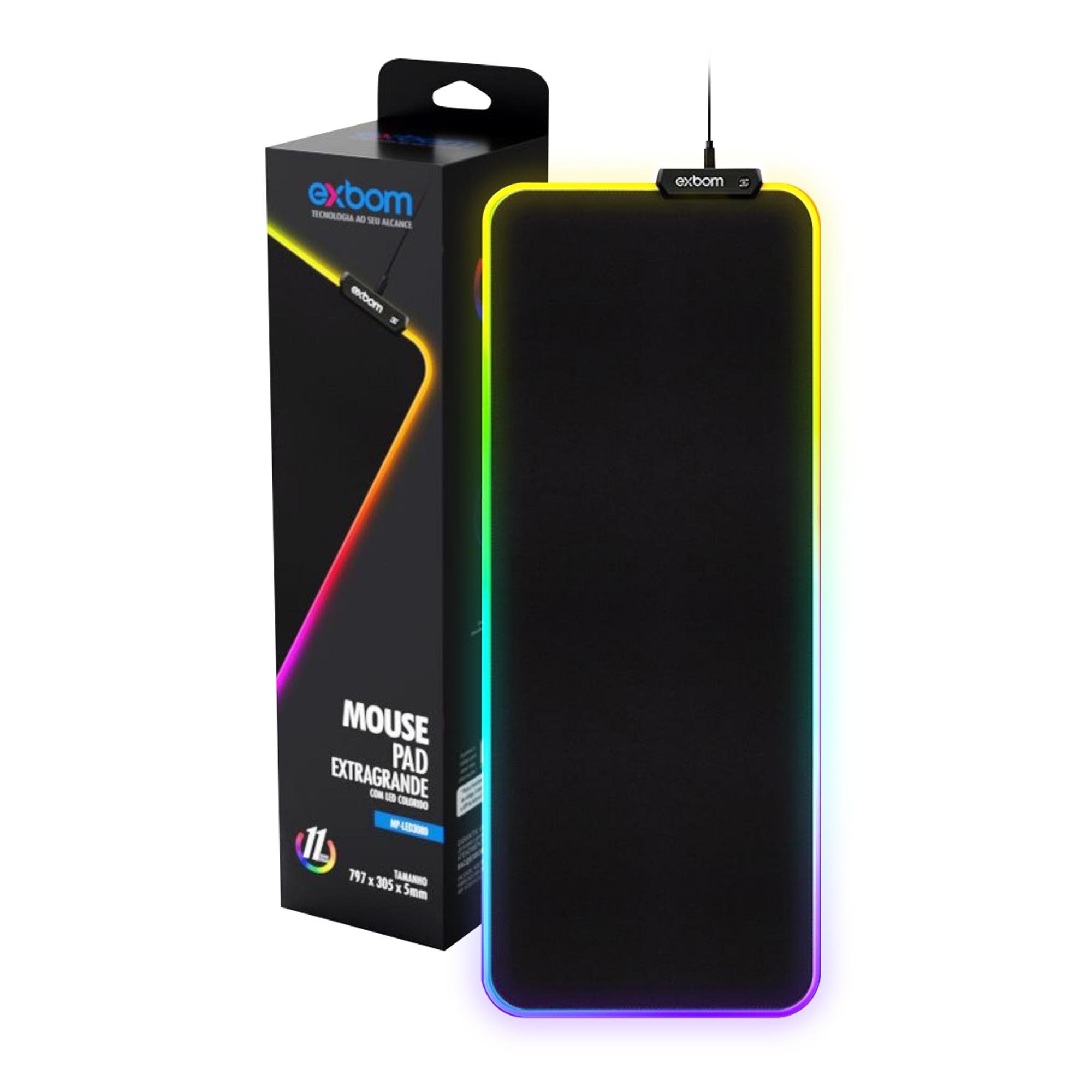 O Mouse Pad Com Led Rgb Exbom é o produto ideal para o seu setup gamer, com sistema moderno de led integrado, versão extra grand, alia qualidade, praticidade e diversão em um só produto.