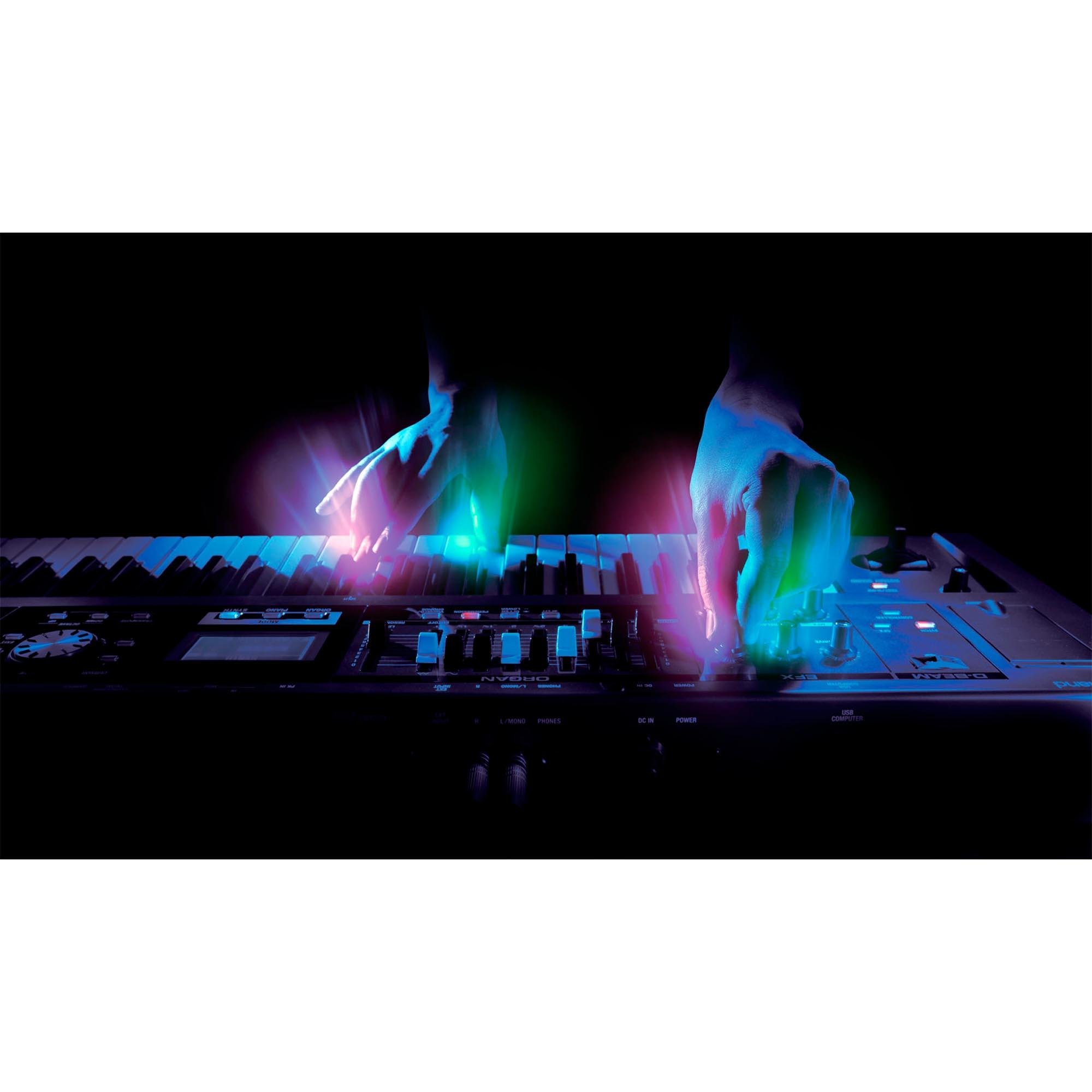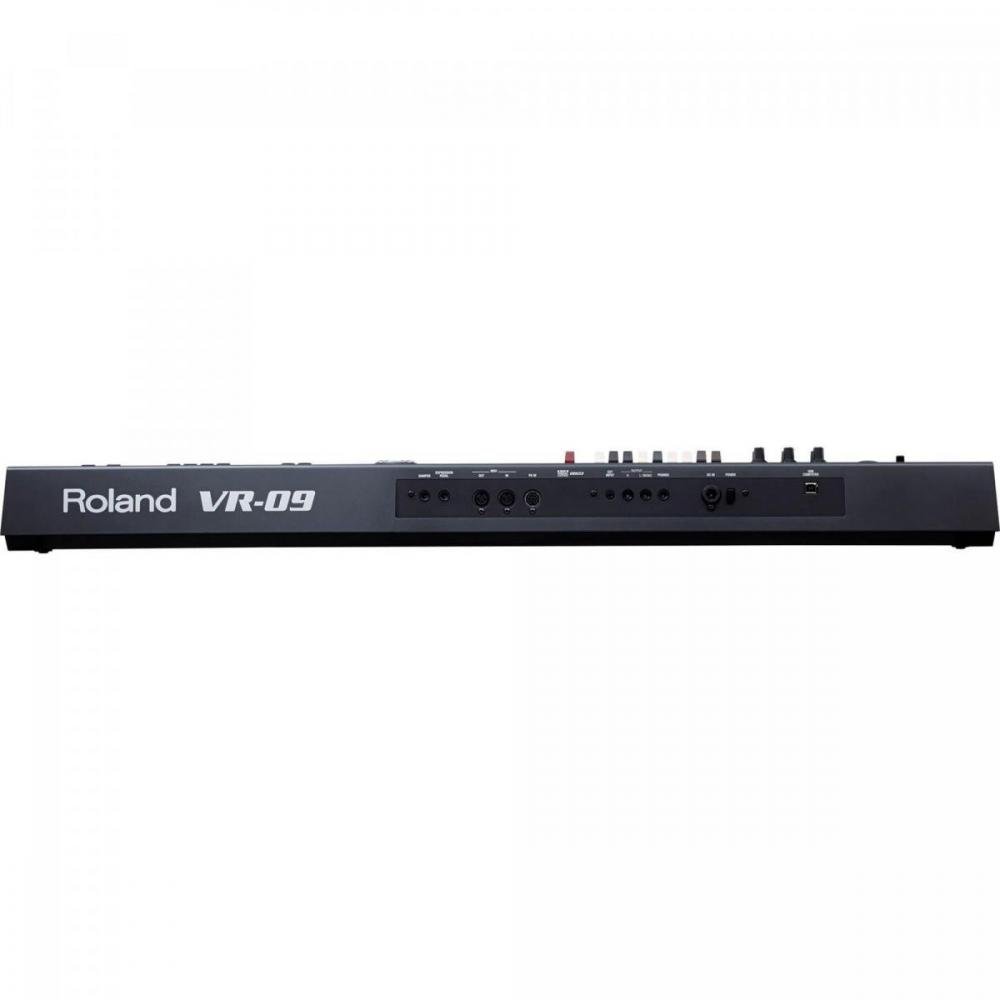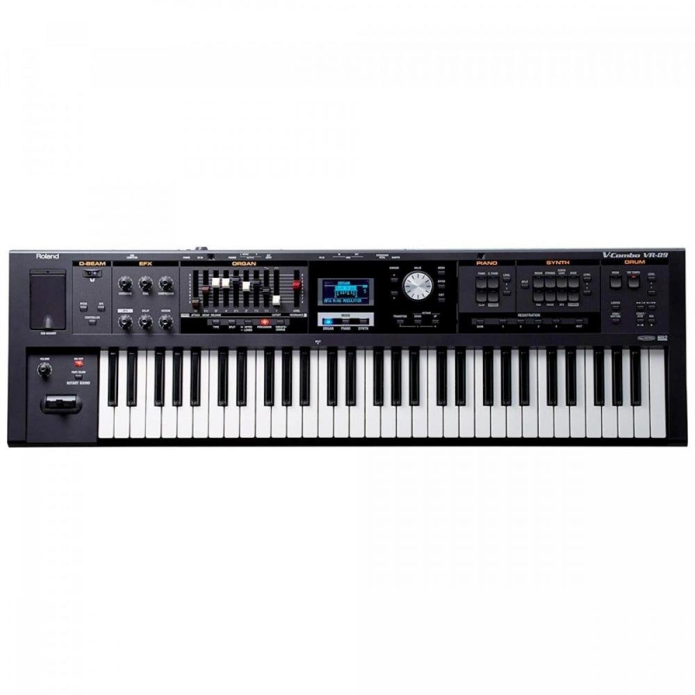 Teclado: O V-Combo VR-09 foi desenvolvido a partir das necessidades do músico que toca ao vivo. O desenho intuitivo do painel frontal e a tela LCD clara, oferecem acesso aos processadores de sons de piano, órgão e sintetizadores da qualidade Roland, com controle dos ajustes de timbre em tempo real. Sete efeitos simultâneos incluem rotary, delay, reverb, tone, overdrive, compressor, e MFX programável, com knobs dedicados. Eles são utilizados para ajustes dos diversos parâmetros com movimentos simples, produzindo o máximo de controle sonoro, com o mínimo de esforço. A interface inteligente facilita o ajuste de splits e layers imediatamente, salvando seus ajustes na memória User para utilização imediata no palco.