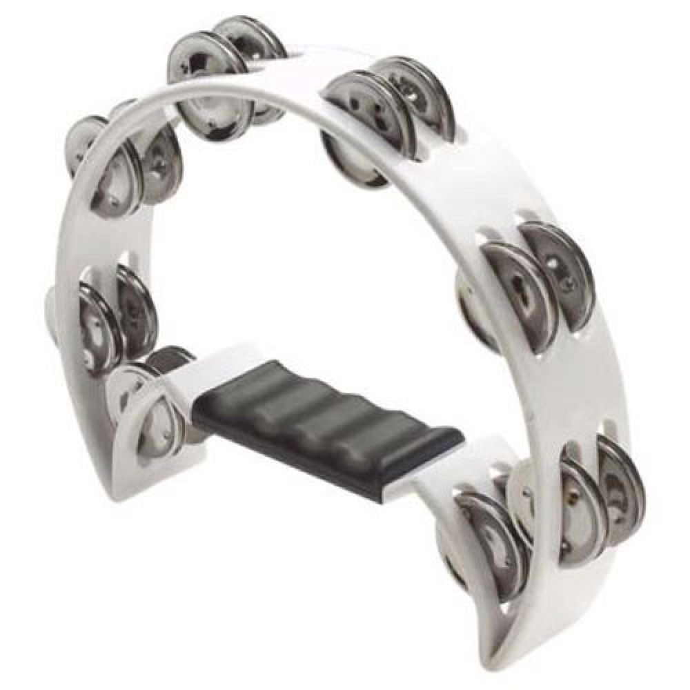 Pandeiro com corpo em policarbonato solido em formato de meia lua, com manopla.