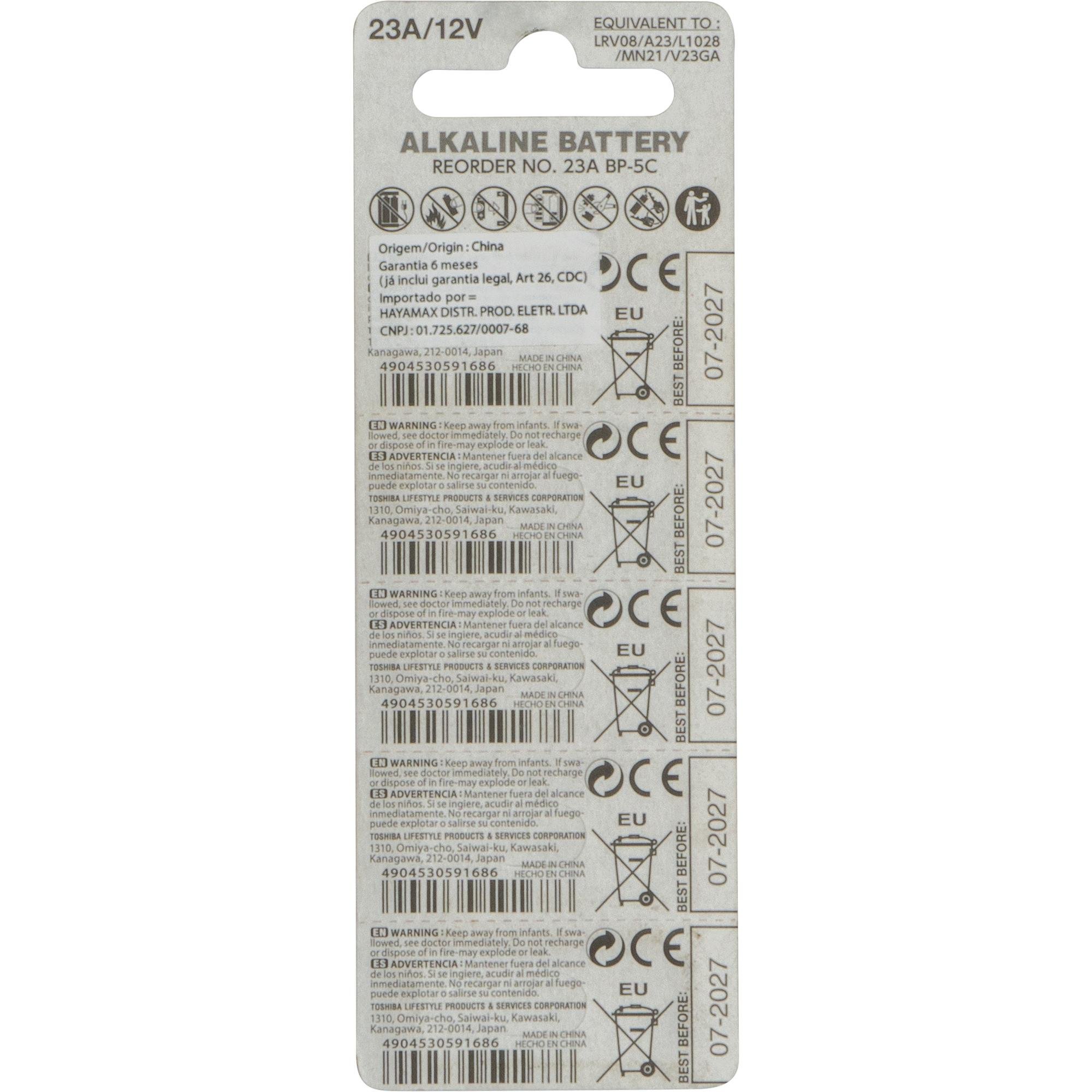 Pilha Alcalina 12V 23A (C/5 Pilhas) Toshiba