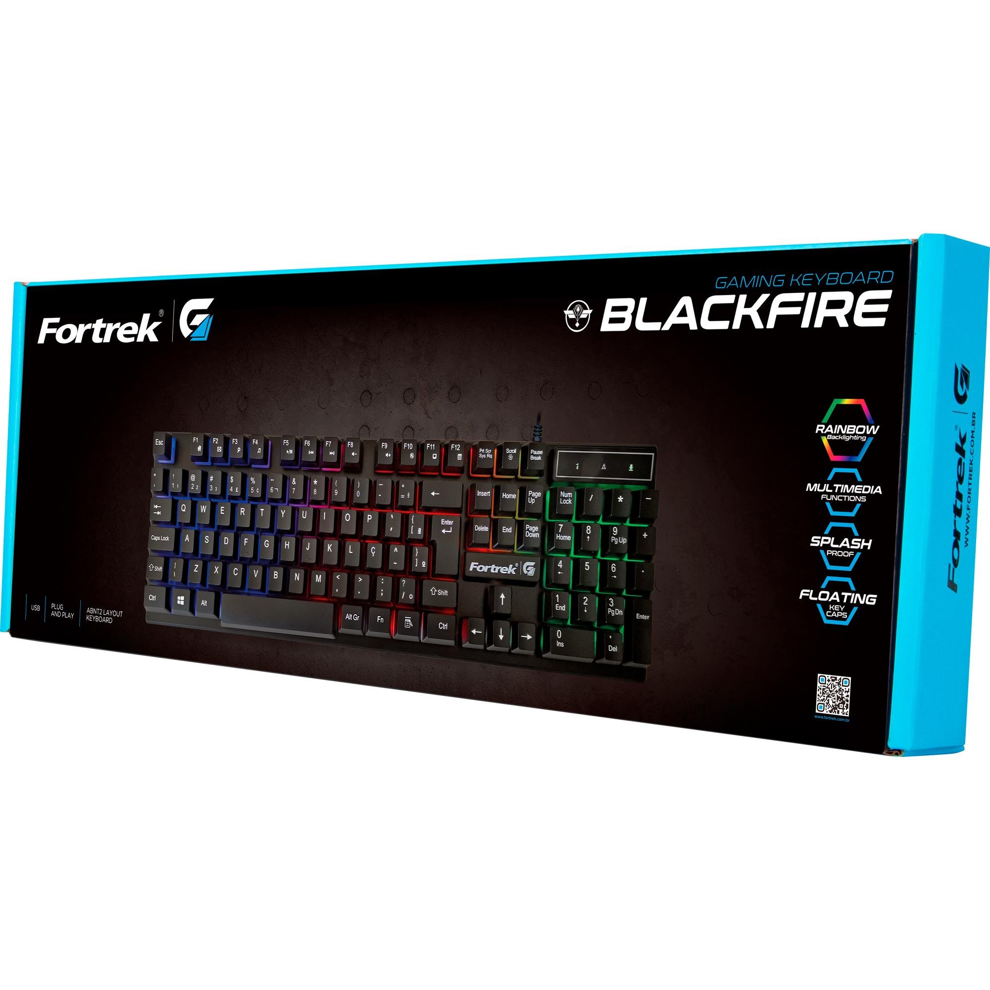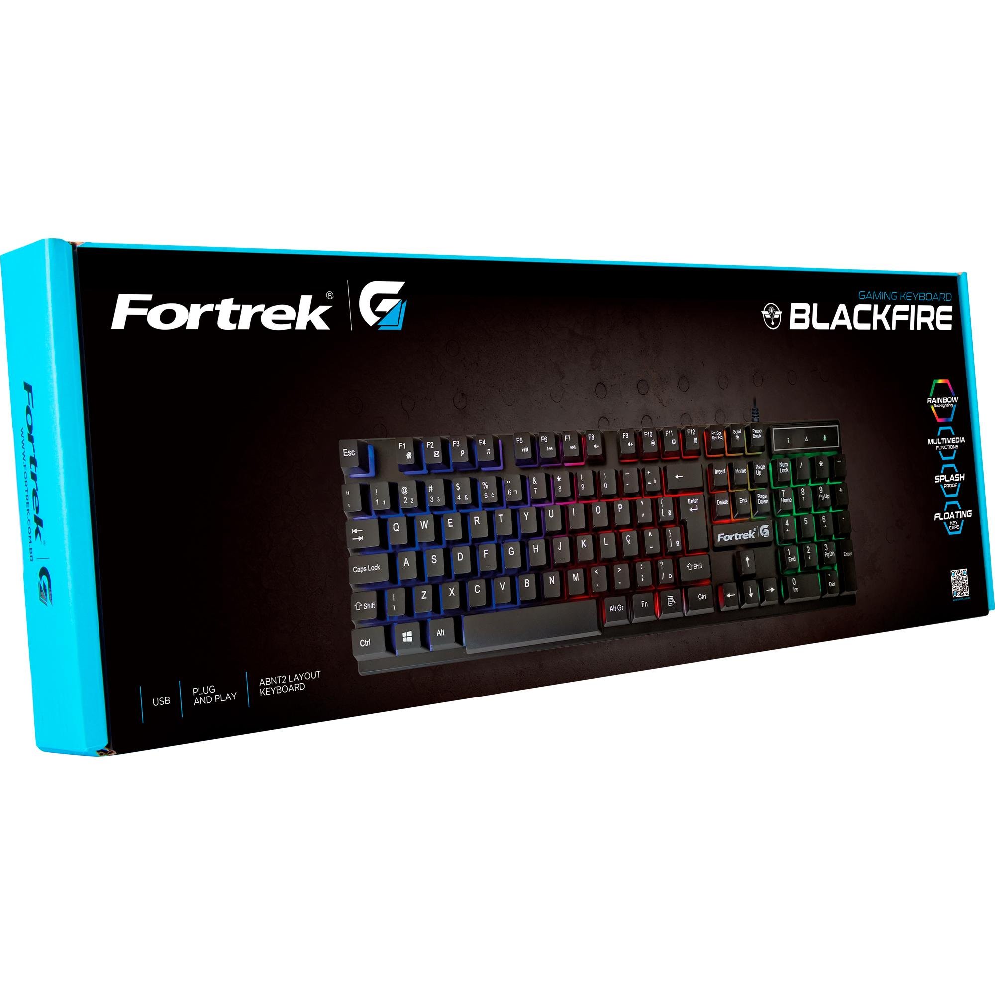 O teclado Blackfire é um teclado com design ergonômico e base confeccionada em material resistente. Os usuários sentirão a diferença ao utilizar as teclas que são macias e silenciosas, sendo ideais também para jogos.