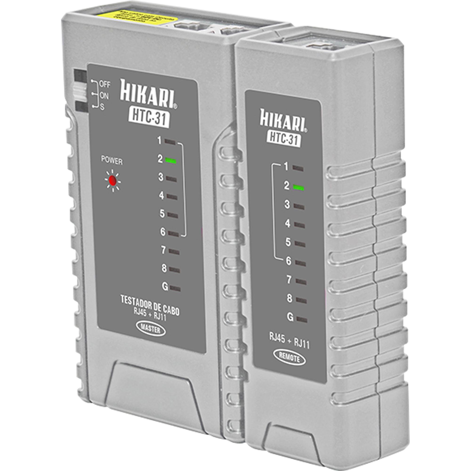 O Testador De Cabo De Rede Hikari HTC-31 é uma ferramenta projetada para utilização em auxílio a manutenção de redes (networks) testes em cabos, permitindo uma verificação rápida das condições de conexões RJ45 em redes de banda larga e cabos RJ11.