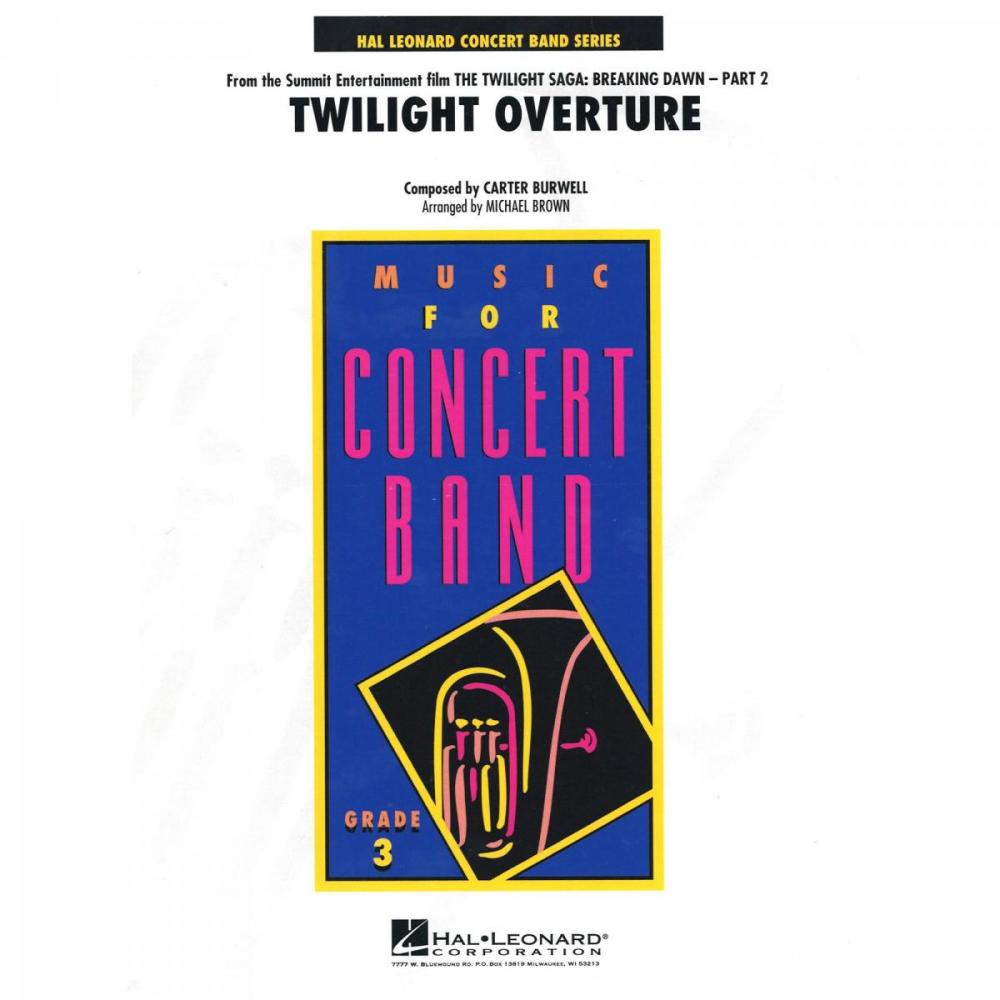A partir do último capítulo da série de filmes blockbuster Twilight Saga, aqui está a assombrosa e dramática abertura de Carter Burwell. Este cenário sinfônico eficaz para banda abre calma e suavemente antes de fechar com o tema rápido poderoso e emocionante. Maravilhosamente marcado.