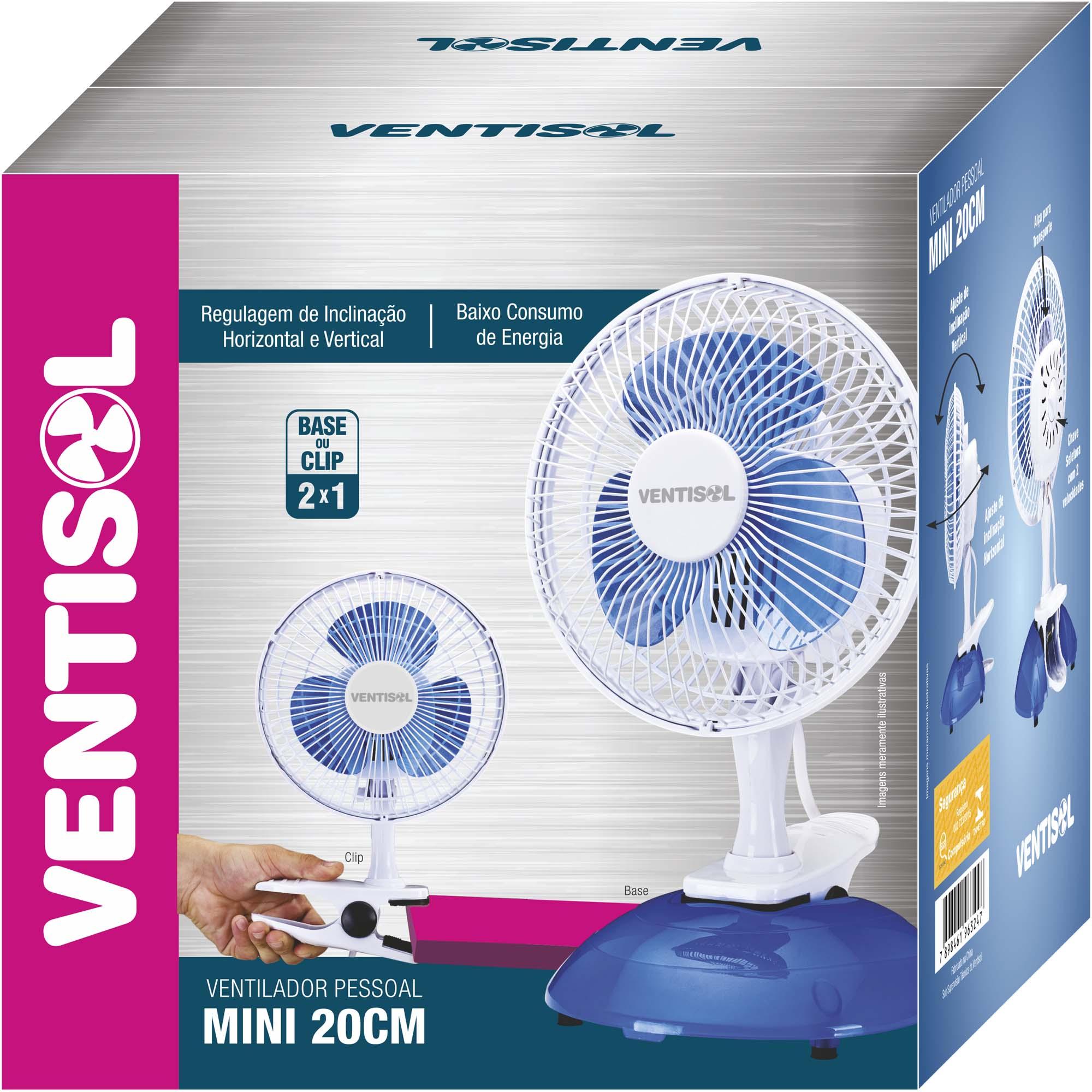 Ventilador de Mesa 20cm 220V MINI Azul/Branco VENTISOL