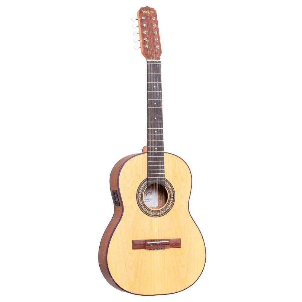 Com acabamento em verniz fosco e corpo em imbuia de estilo Clássico, a Viola Rozini Caipira Clássica Rozini RV155 oferece uma aparência elegante e sofisticada. O tampo em marfim e o braço em cedro proporcionam um som quente e balanceado, enquanto as tarraxas cromadas com pino folk garantem afinação precisa e facilidade no manuseio.